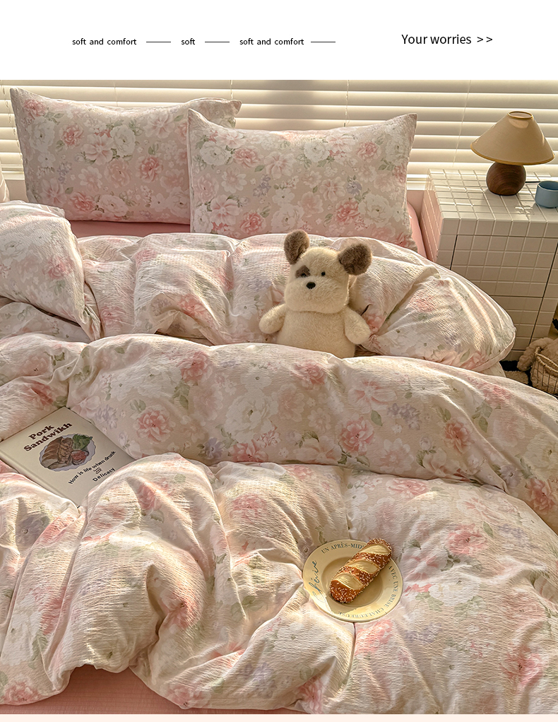 当前位置: 91家纺网 > 商品网购 > 床品套件 > 四件套 > 水洗棉四件套 > 繁花家居 2025学生季第二波木棉水洗棉四件套三件套跑量款 一速白茶