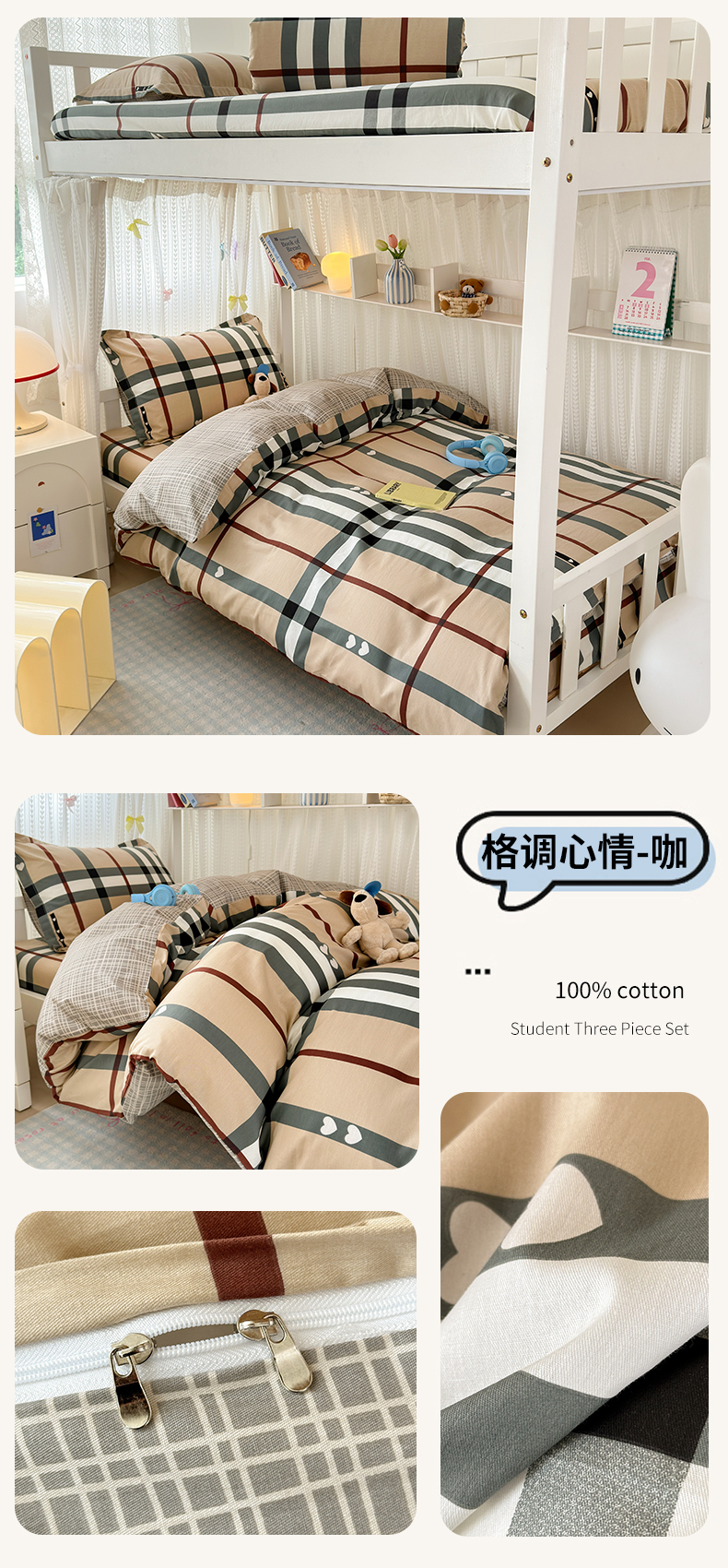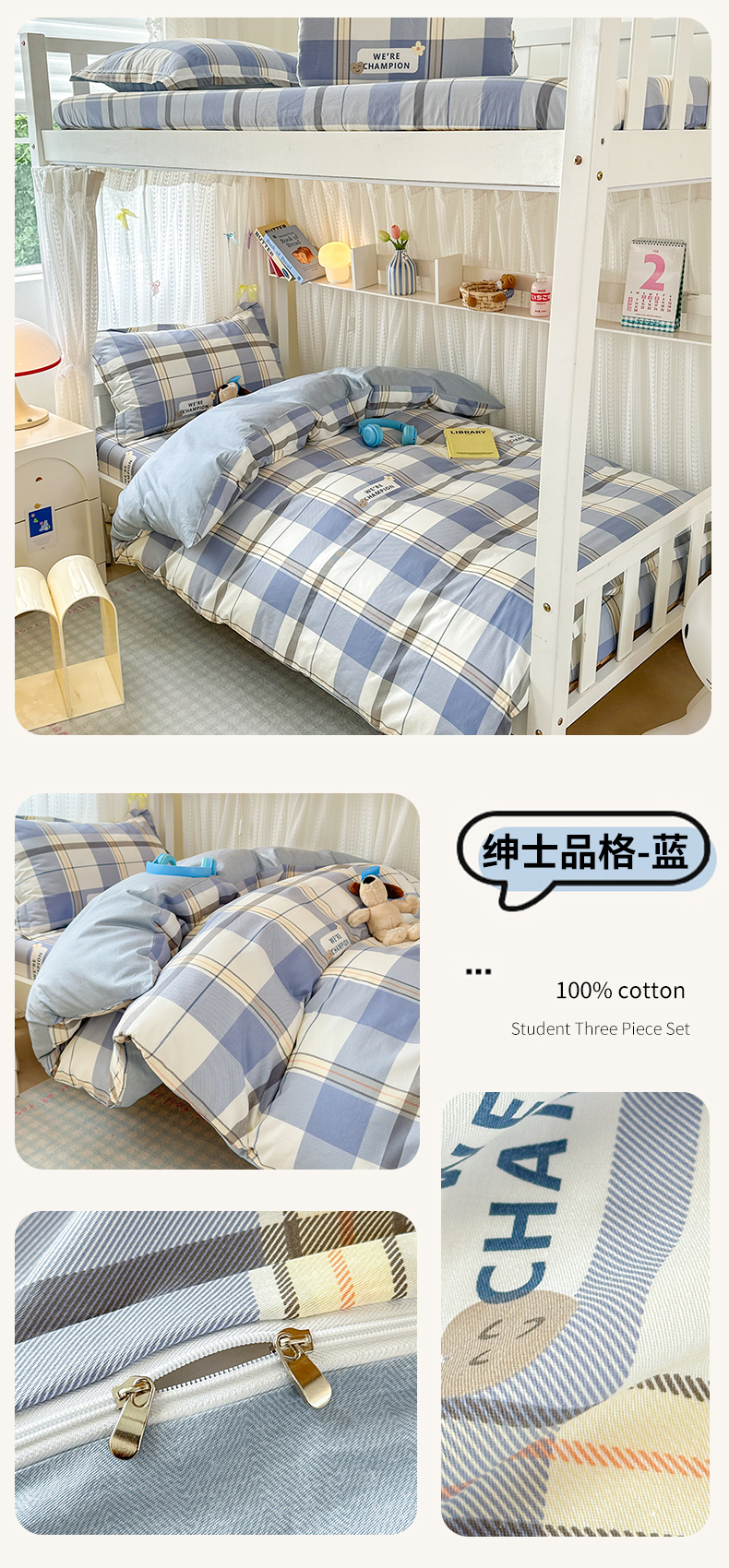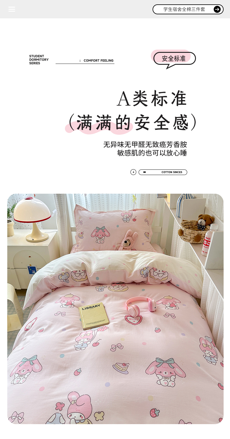 当前位置: 91家纺网 > 商品网购 > 床品套件 > 三件套 > 拾物记 2025新款A类全棉纯棉棉印花学生宿舍三件套上下铺三件套-第二批 可乐贝儿