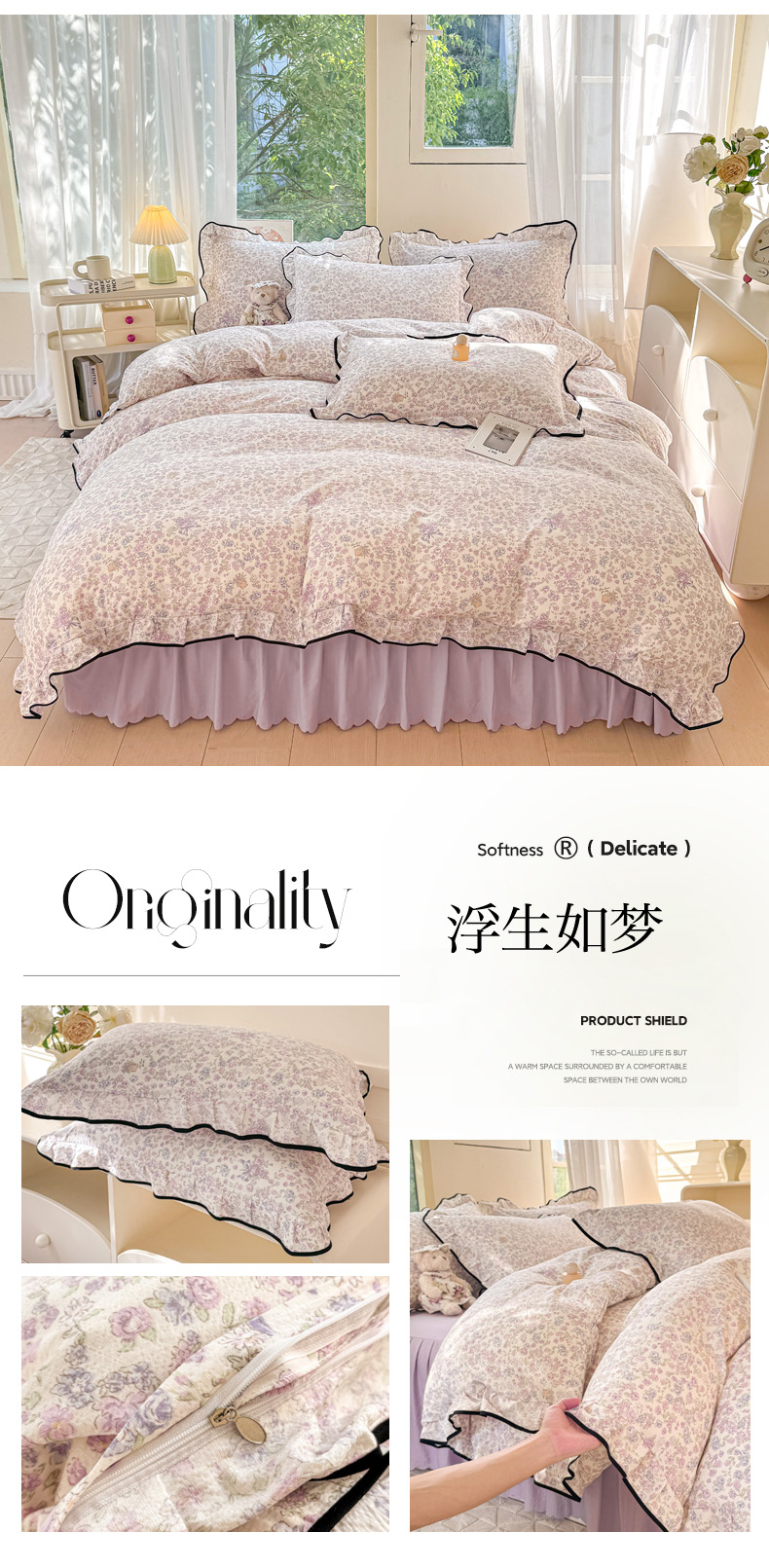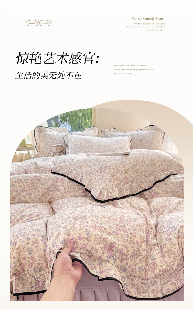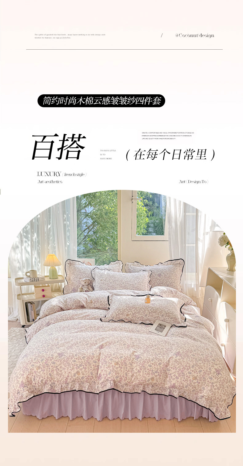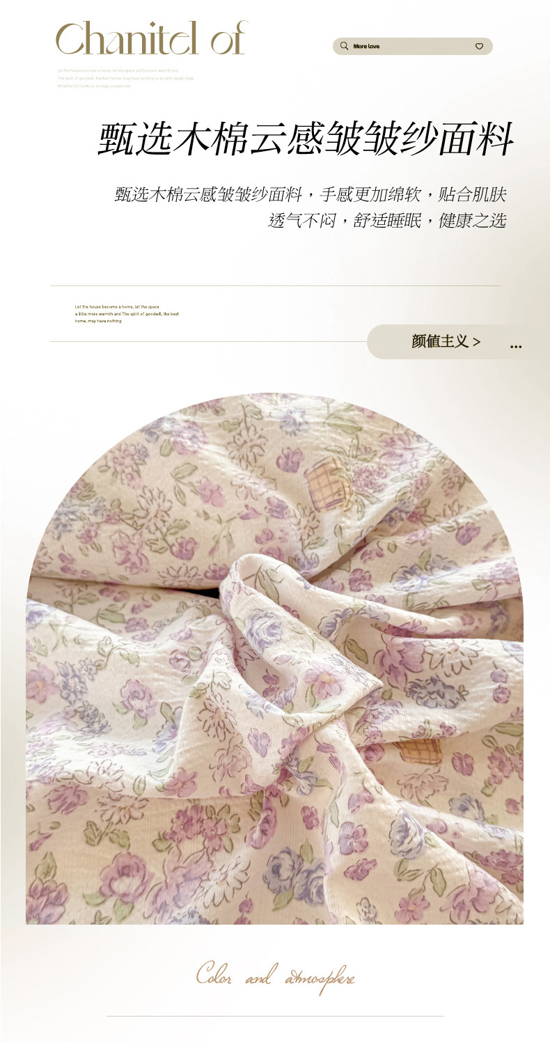 当前位置: 91家纺网 > 商品网购 > 床品套件 > 四件套 > 双层纱四件套 > 上尚居 2025新款简约时尚木棉云感皱皱纱四件套 浮生如梦