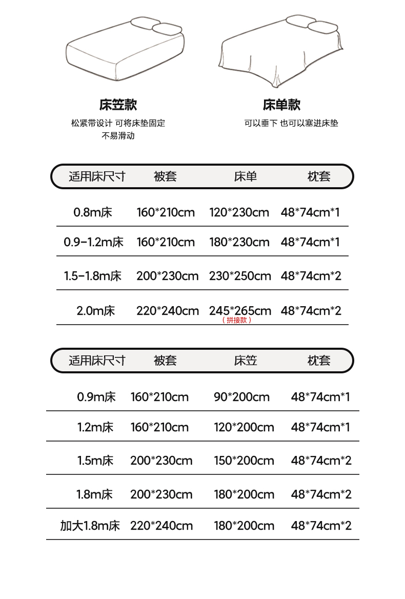 2.2被套1.8加大床笠四件套 | ¥135.00 |