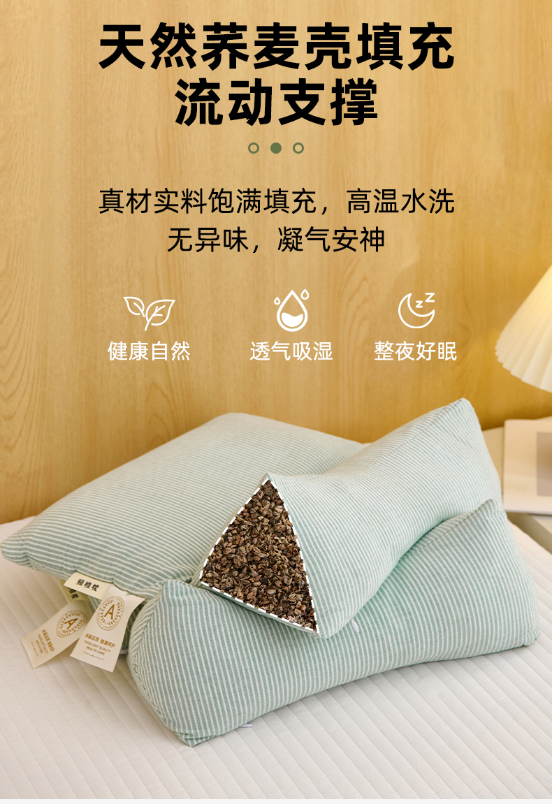 当前位置: 91家纺网 > 商品网购 > 枕头/枕芯/保健枕/颈椎枕 > 织布人 2025新款荞麦枕A类纯棉条纹无印风组合牵引颈椎枕头枕芯荞麦护颈枕芯 蓝 三角35x16cm 方枕35x20cm组合枕/只
