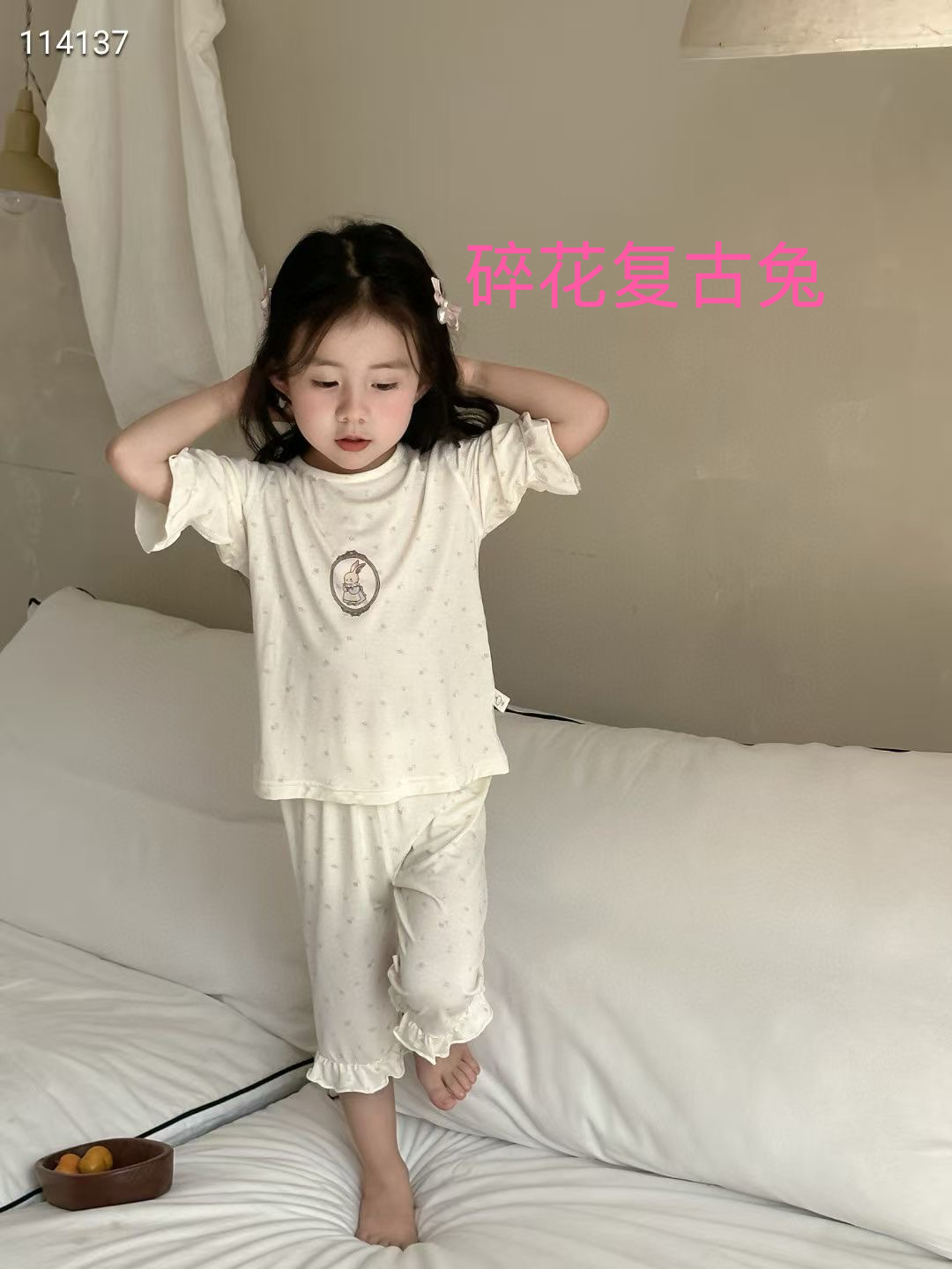 商品名称:妍景家居生活馆 2025春夏新款儿童优可丝女童套装 碎花复古兔