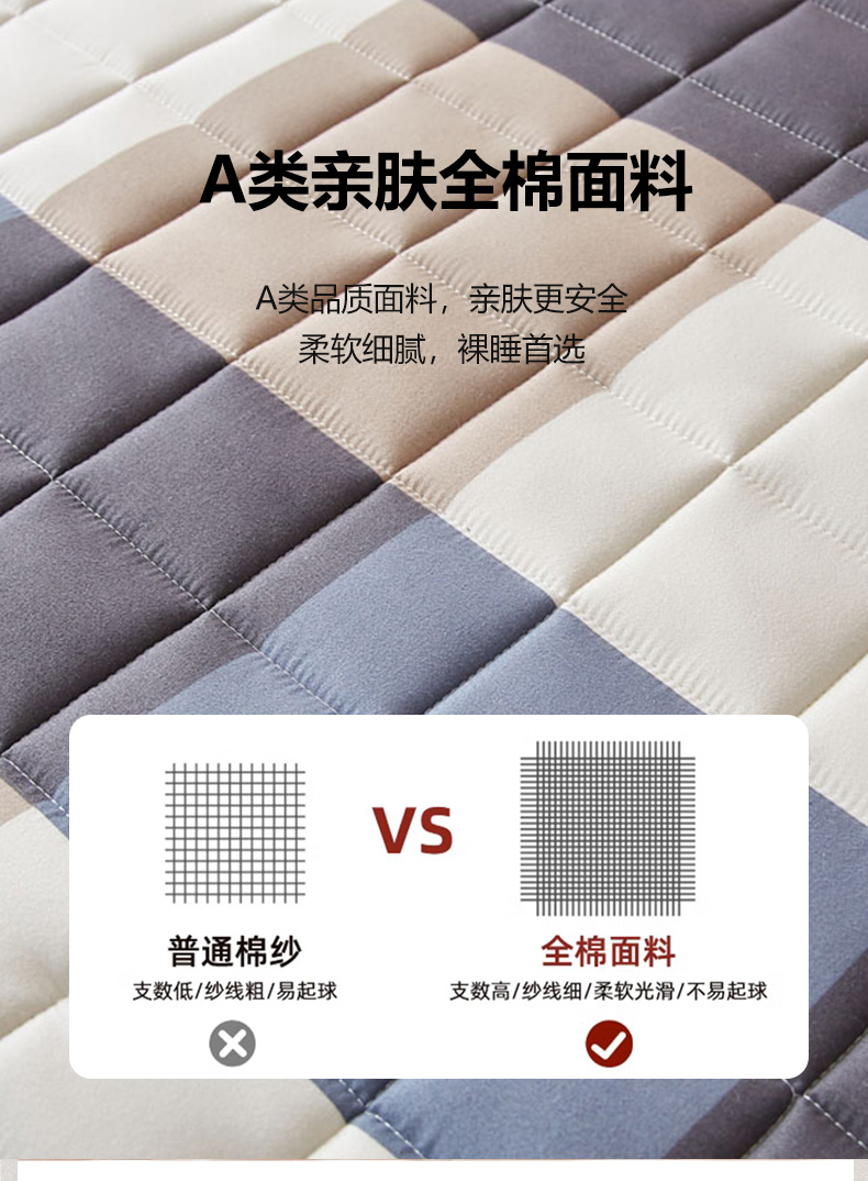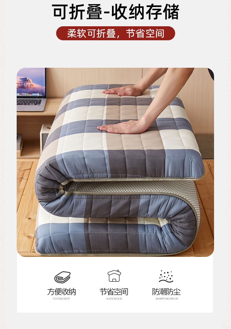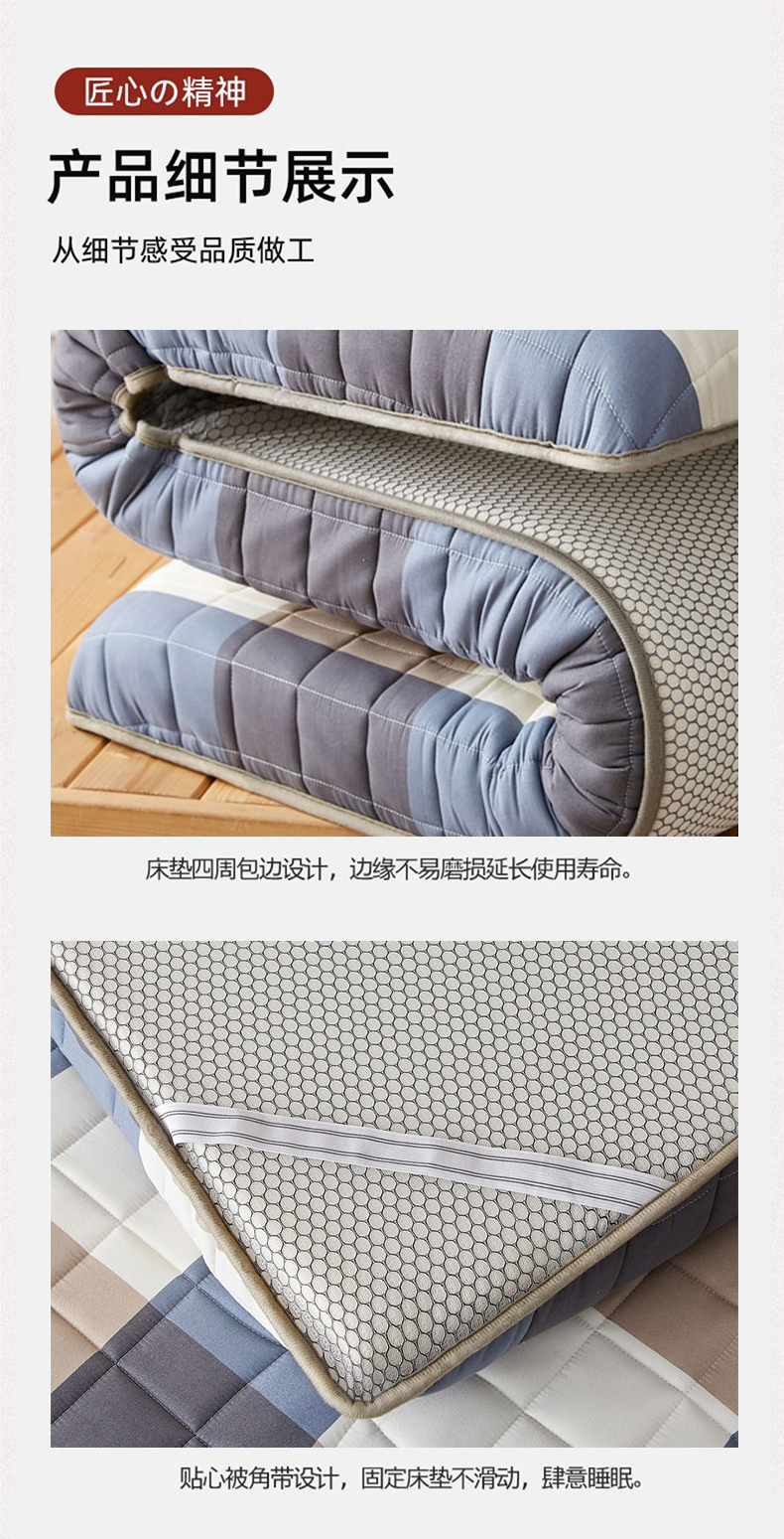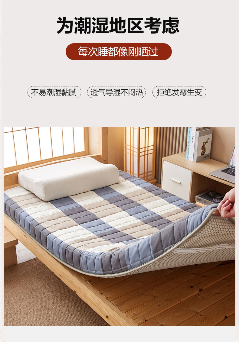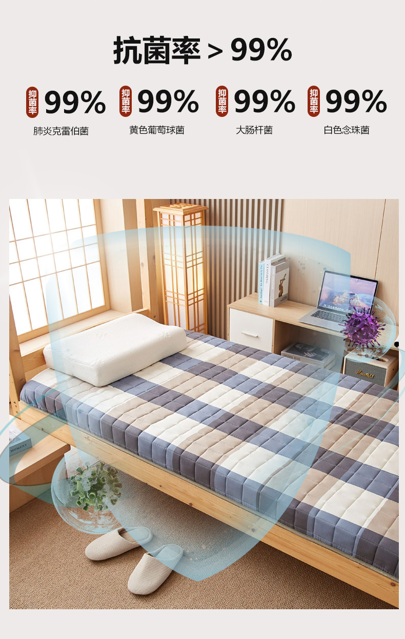 商品名称:暖季2025A类无印风学生款 棉花床垫 蓝大格