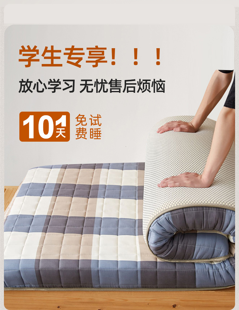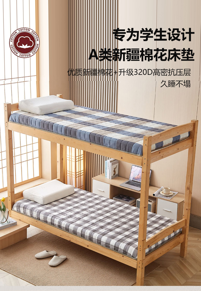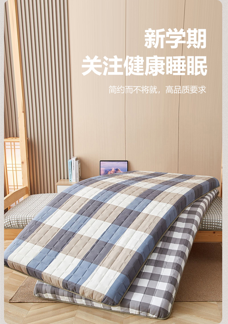 暖季2025A类无印风学生款 棉花床垫 蓝大格