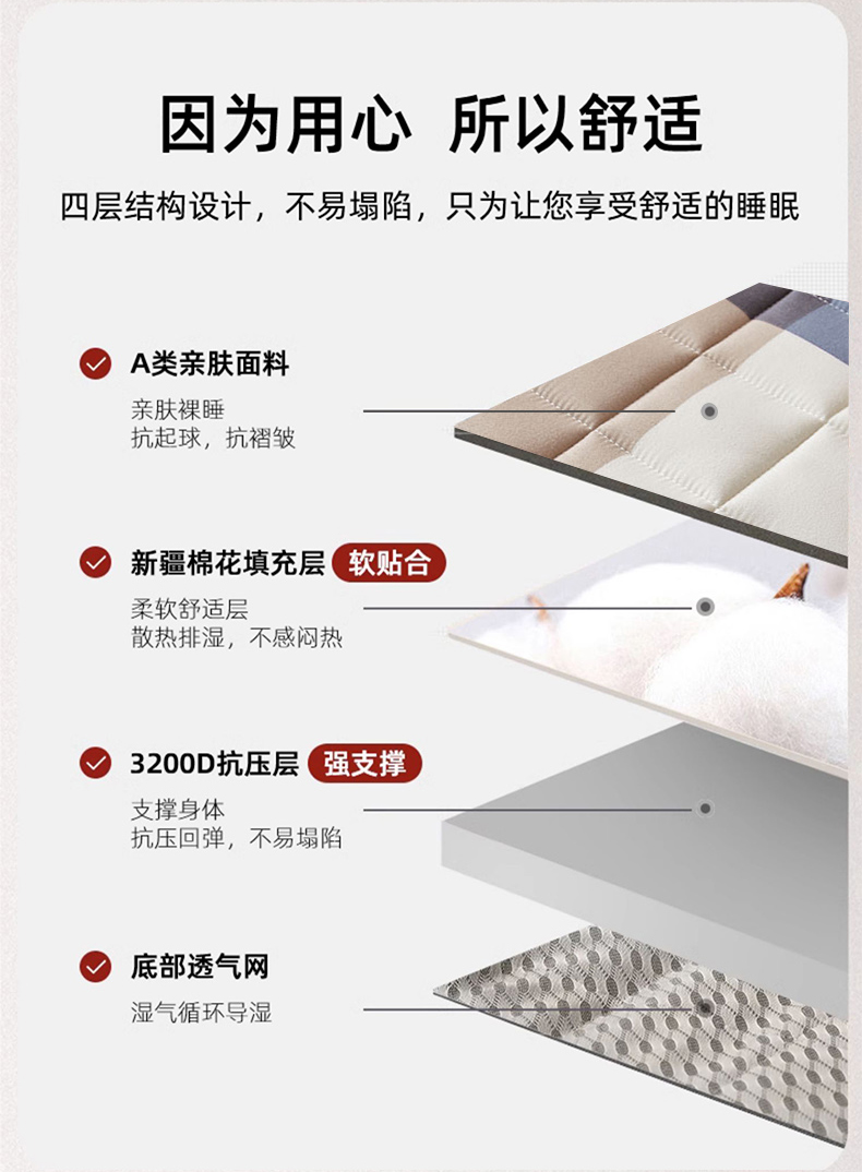 (总)暖季家纺 2025新款零压深睡眠学生记忆棉针织棉提花床垫,凌悦,清韵,云逸,素致