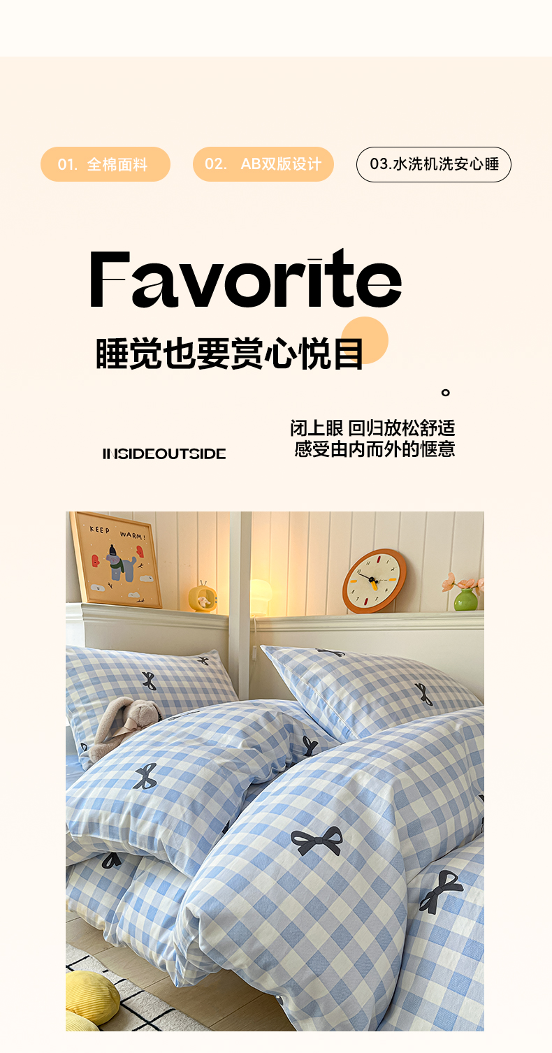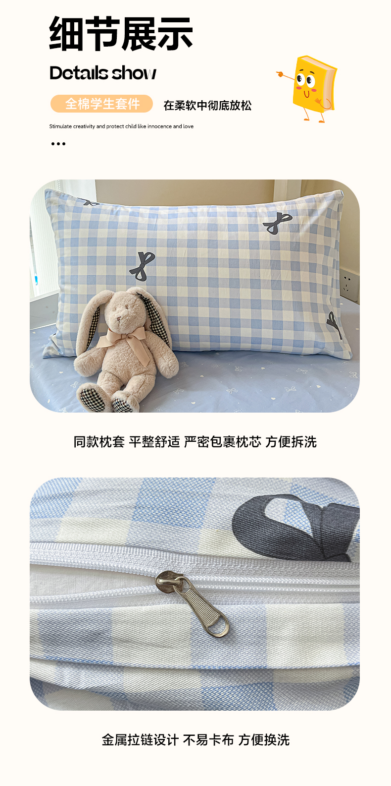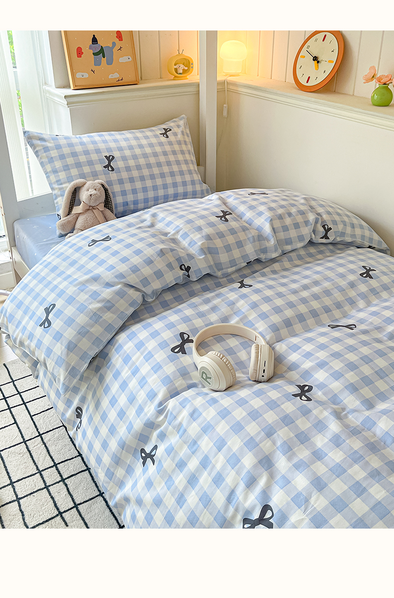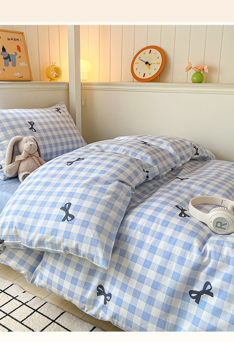 当前位置: 91家纺网 > 商品网购 > 床品套件 > 三件套 > 雅居纺家纺 2025新款全棉纯棉印花系列学生宿舍三四件套上下铺三件套 蓝格子蝴蝶结