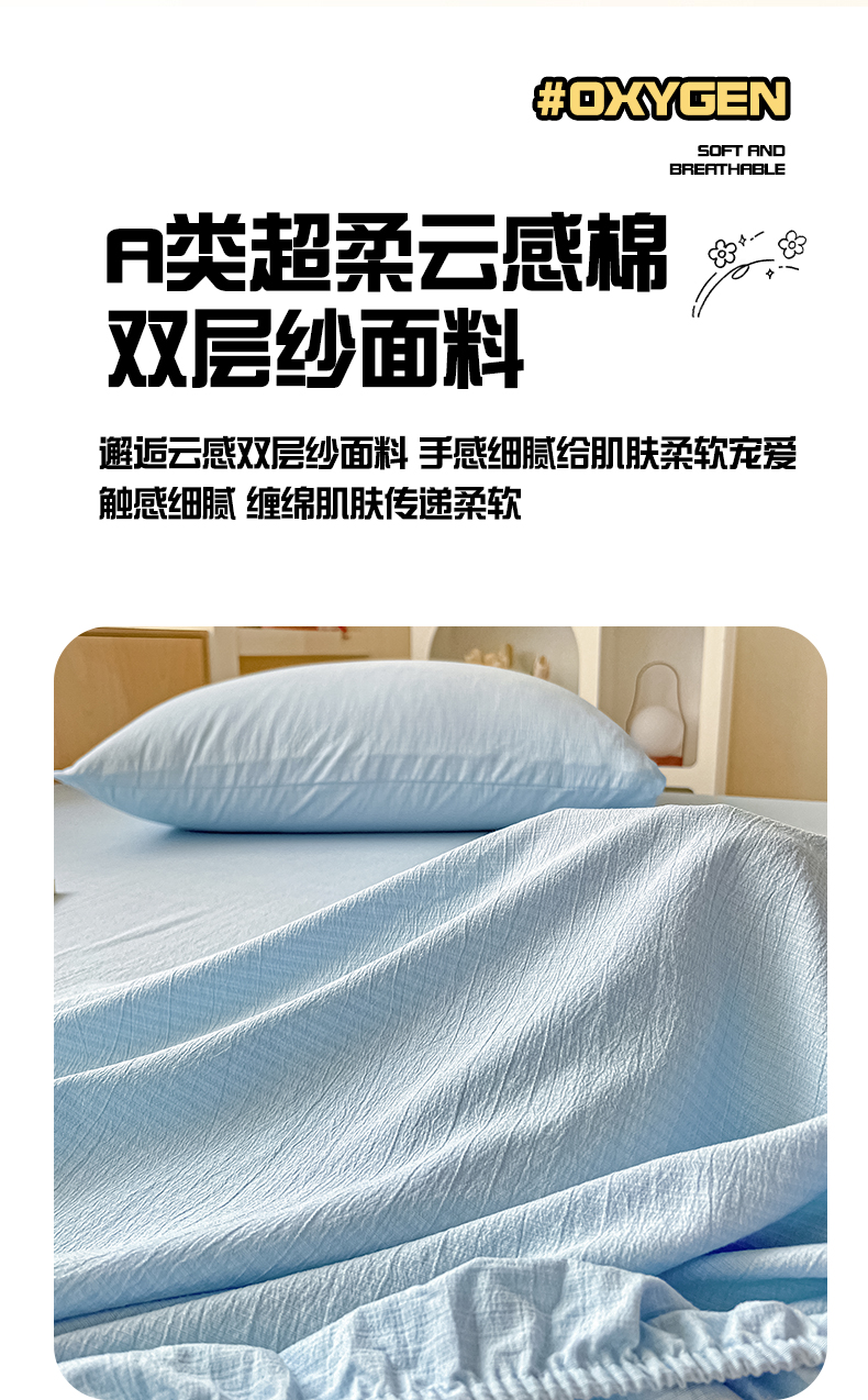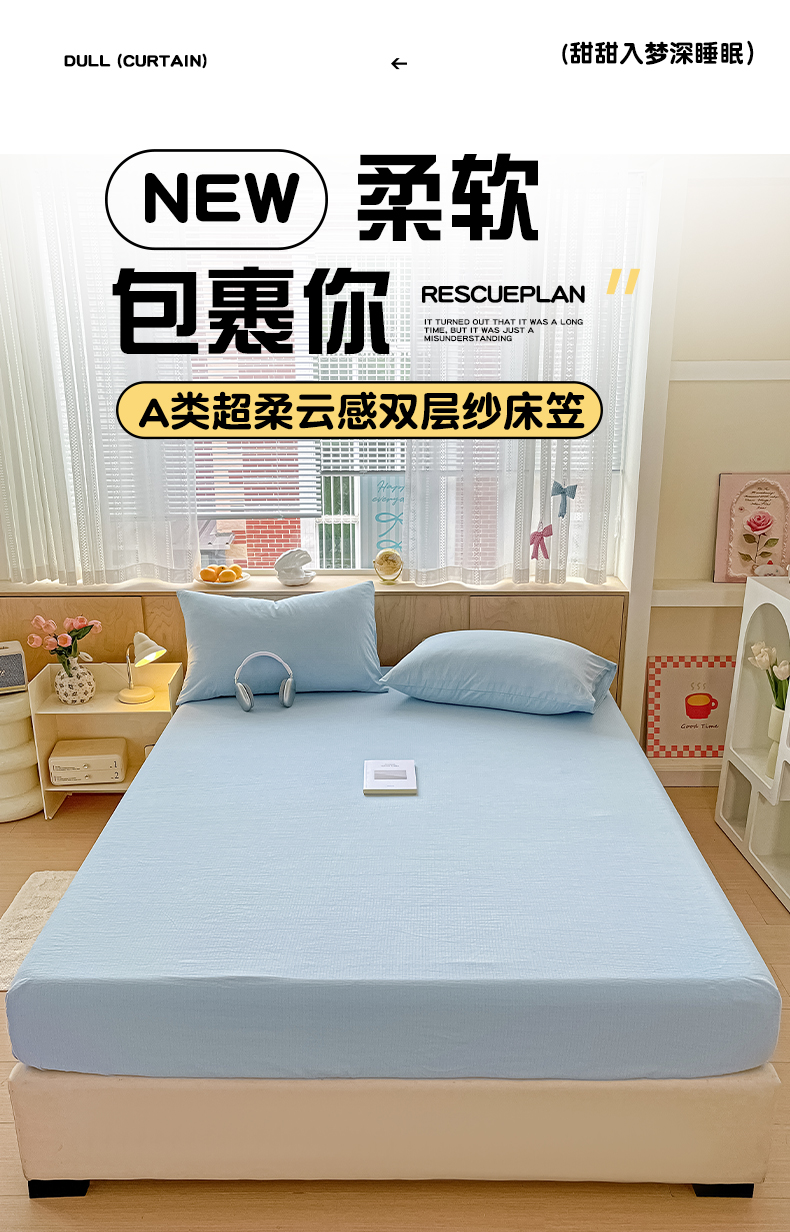 彩韵家纺 2025新款超柔云感双层纱床笠 双层纱-浅蓝