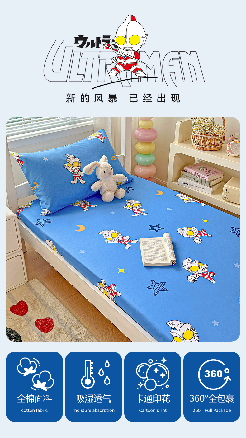 名兮家居 2025-奥特曼-三丽鸥全棉13372学生床上下铺床笠【含防伪标】 艾斯奥特曼