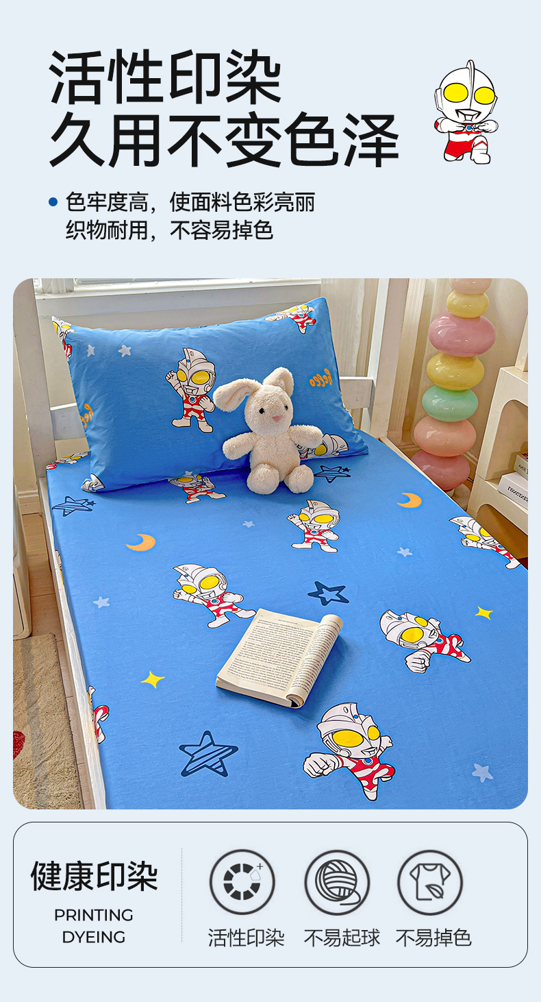 • 91家纺网 家纺一手货源 找家纺 名兮家居 2025-奥特曼-三丽鸥全棉13372学生床上下铺床笠【含防伪标】 艾斯奥特曼