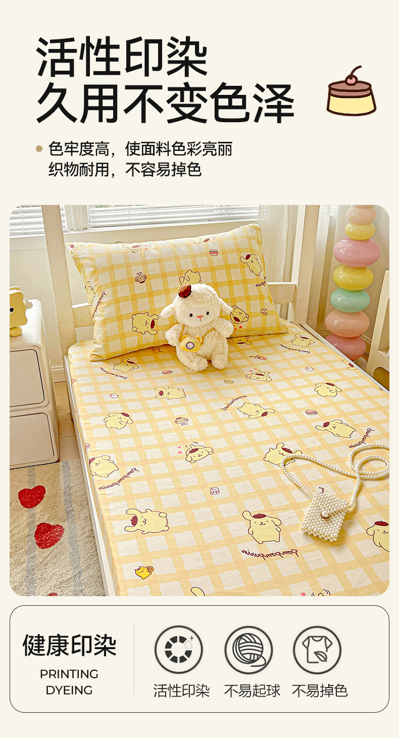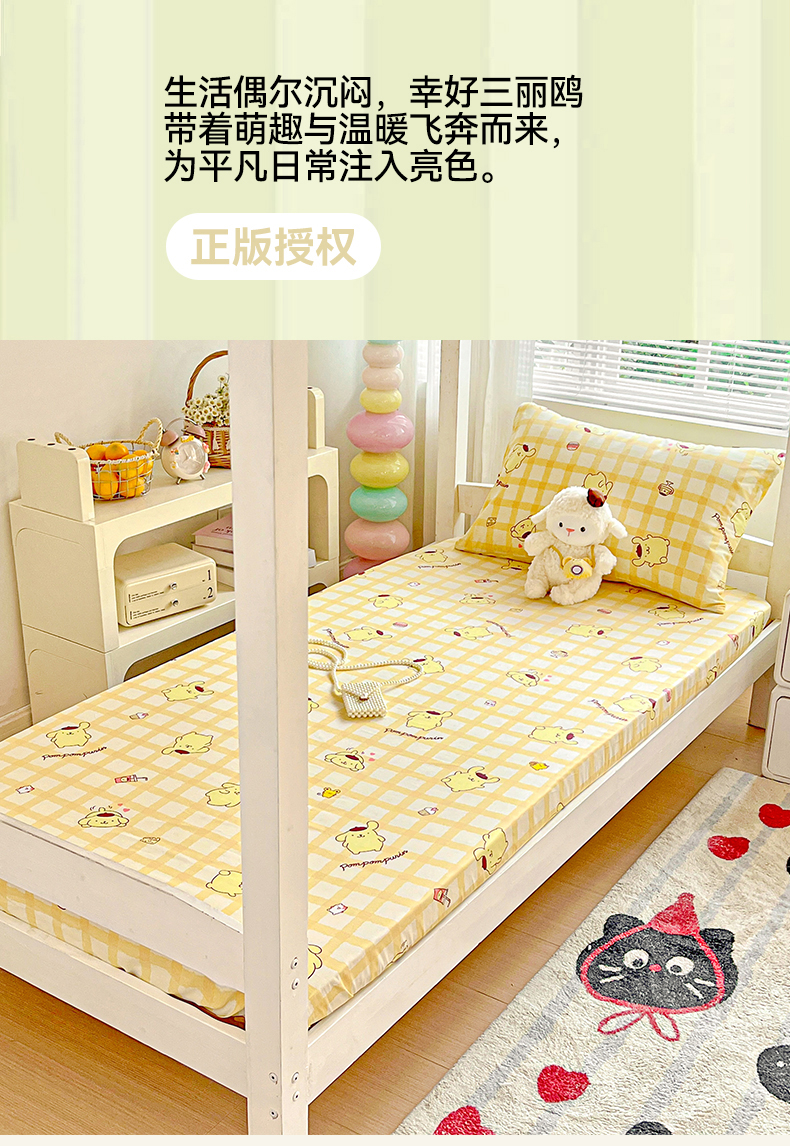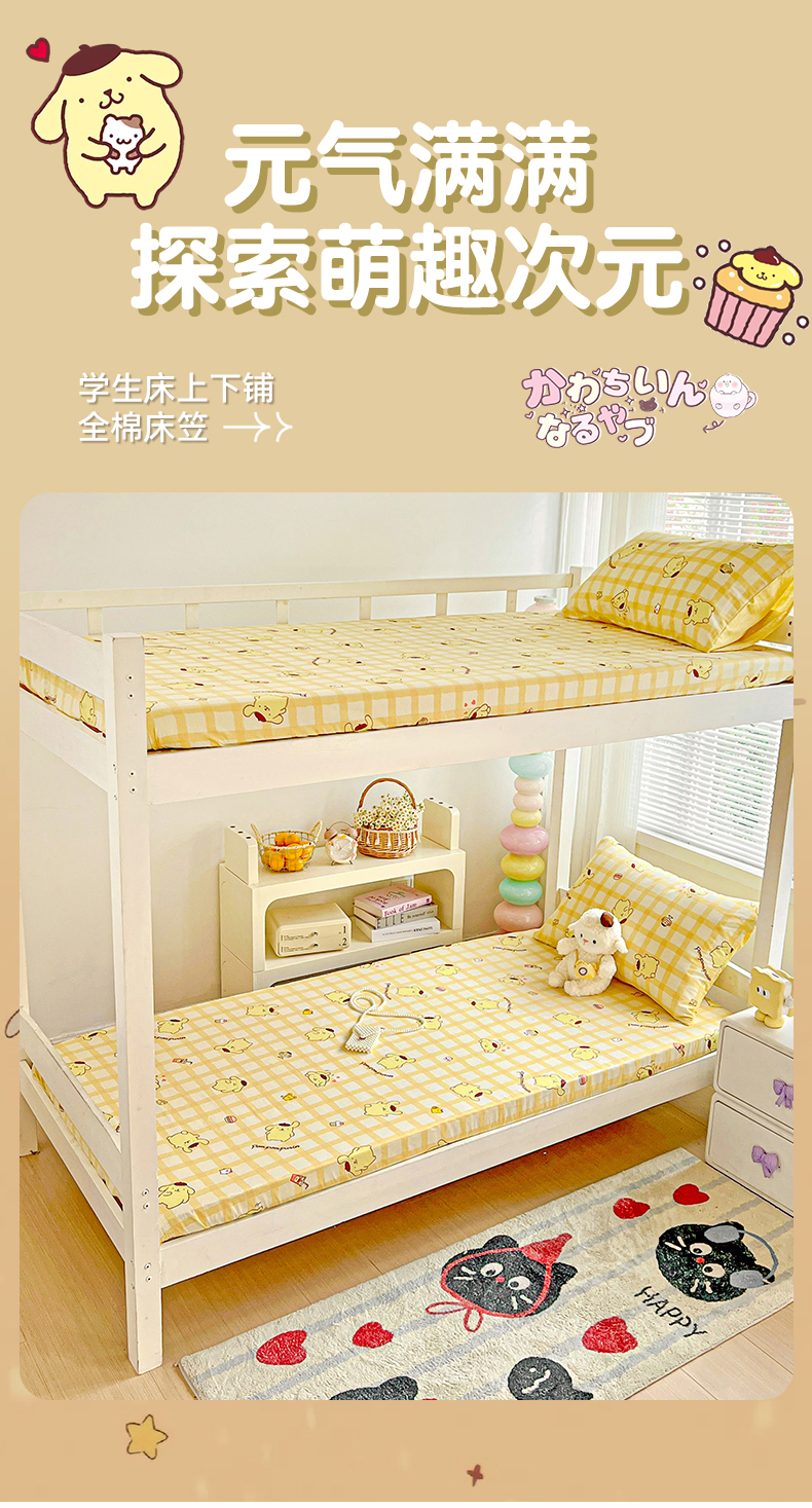 • 91家纺网 家纺一手货源 找家纺 名兮家居 2025-奥特曼-三丽鸥全棉13372学生床上下铺床笠【含防伪标】 可可布丁狗