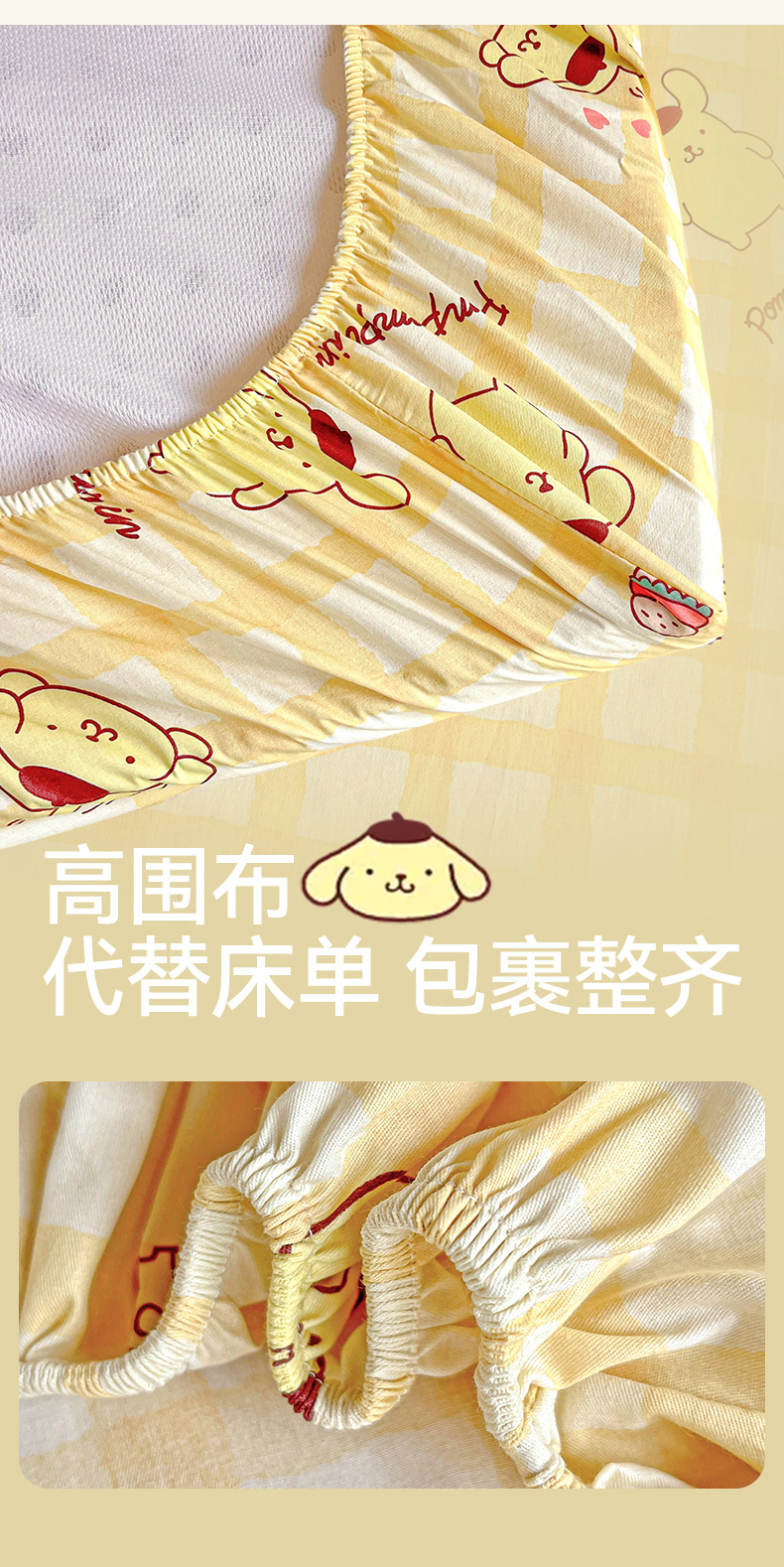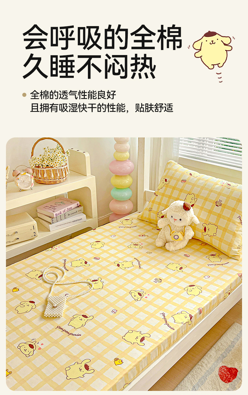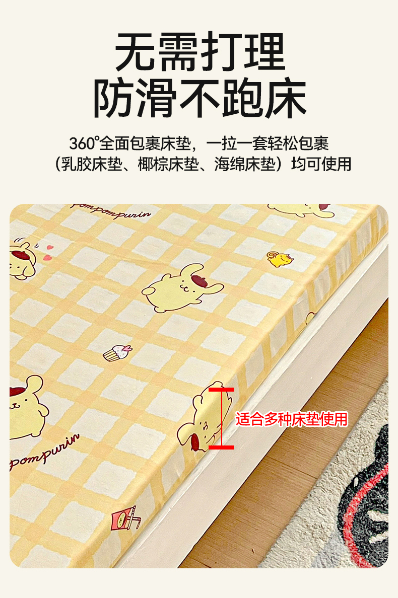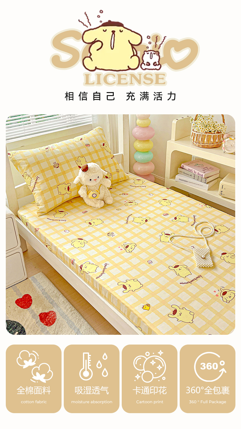 • 91家纺网 家纺一手货源 找家纺 名兮家居 2025-奥特曼-三丽鸥全棉13372学生床上下铺床笠【含防伪标】 可可布丁狗