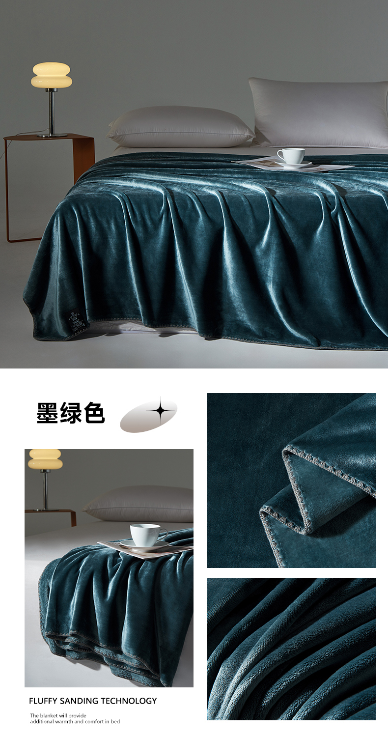 商品名称:馨米莱家纺2025新款贝壳边牛奶绒毛毯 墨绿色