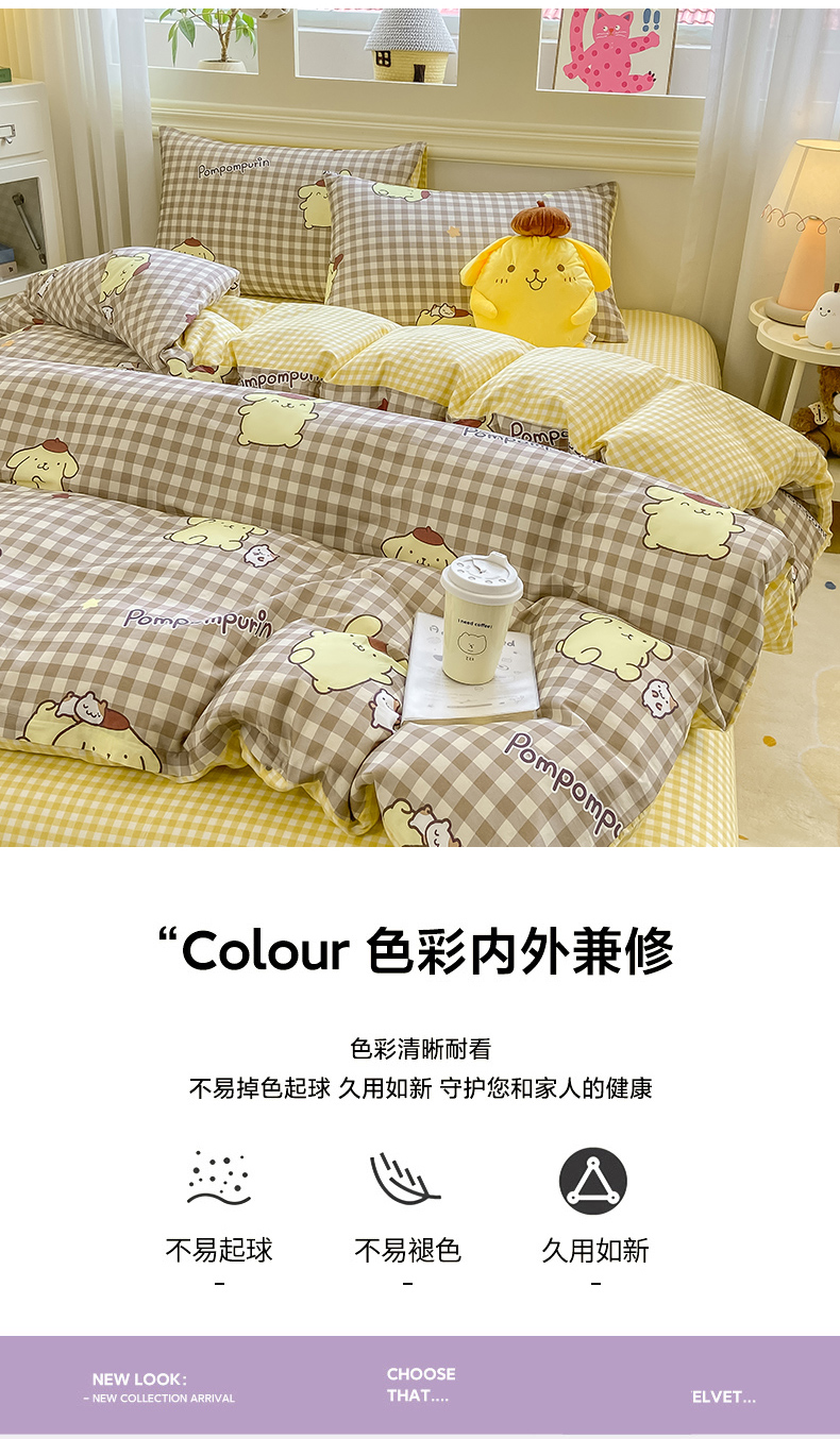 当前位置: 91家纺网 > 商品网购 > 床品套件 > 四件套 > 全棉普通四件套 > 博雅 2025新款全棉三丽鸥全棉四件套-小版 巧克力布丁狗