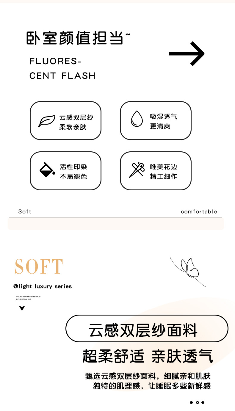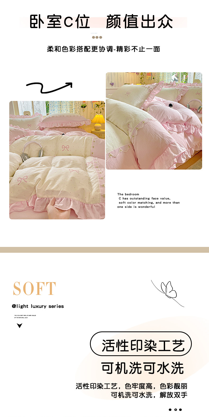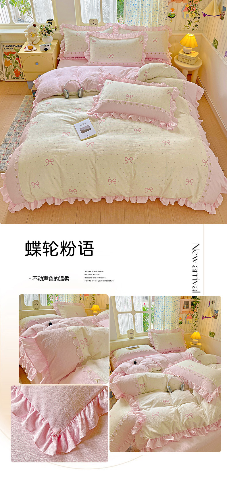 商品名称:娜娜 2025新款云感双层纱四件套 蝶轮粉语