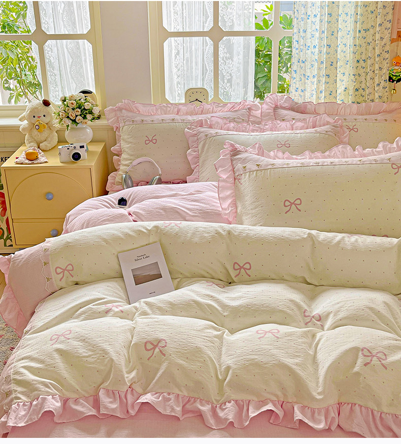 (总)娜娜 2026新款A类云朵锦花边四件套,动物世界-雾蓝,满天星-豆沙,满天星-浅紫,小雏菊-浅绿,小雏菊-玉色,樱花粉