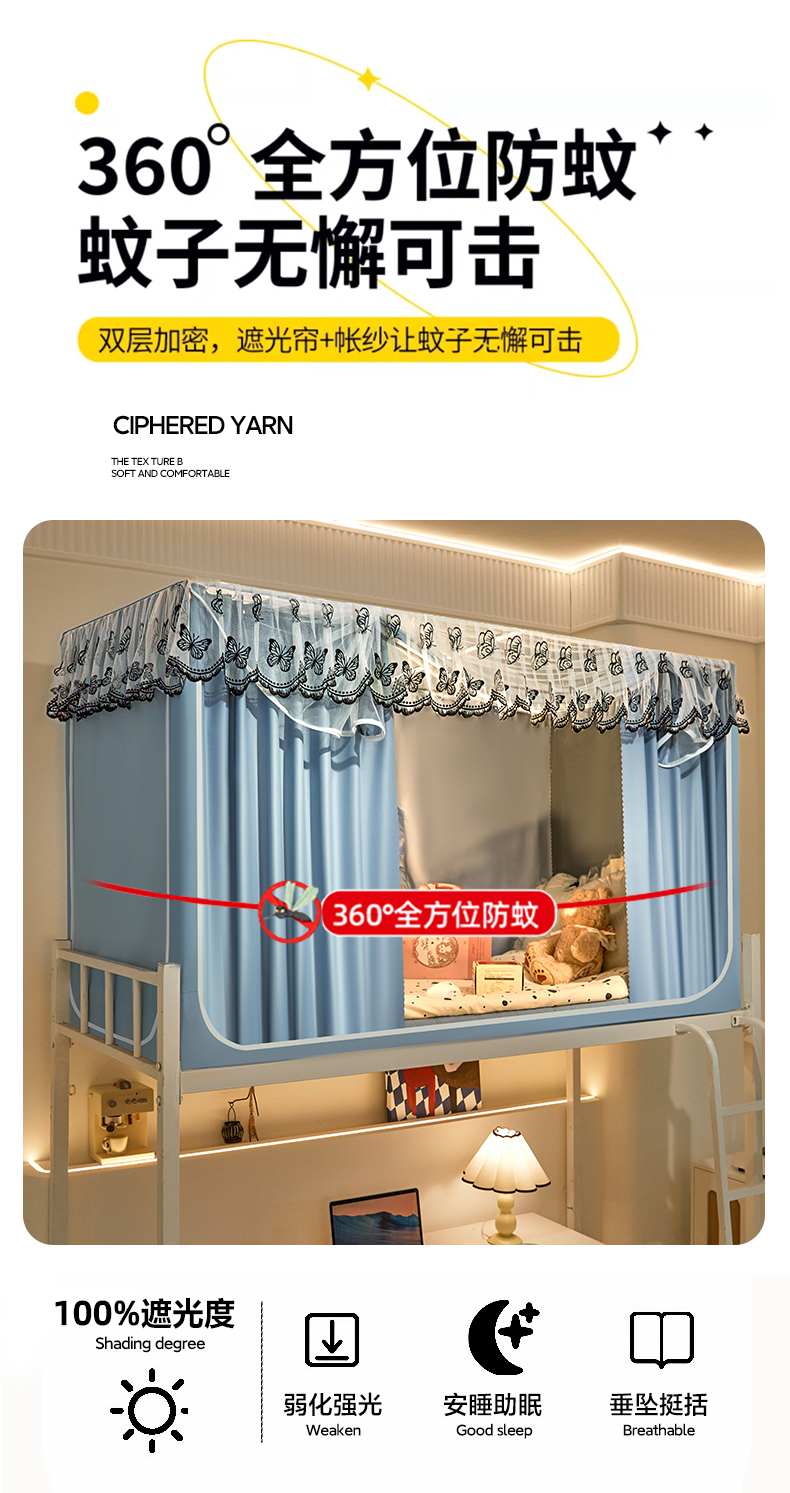 (总)爱上家居 2024新款强遮光防蚊学生宿舍蚊帐,简约线条,可爱小鱼,可爱熊猫,冒险狗,森林动物,闪亮星星,星星小狗,星星月亮
