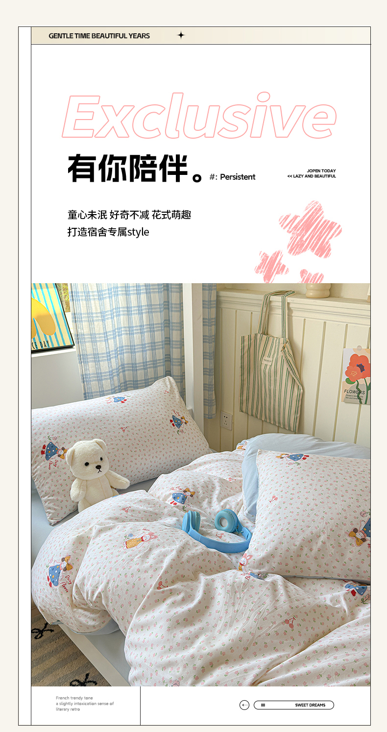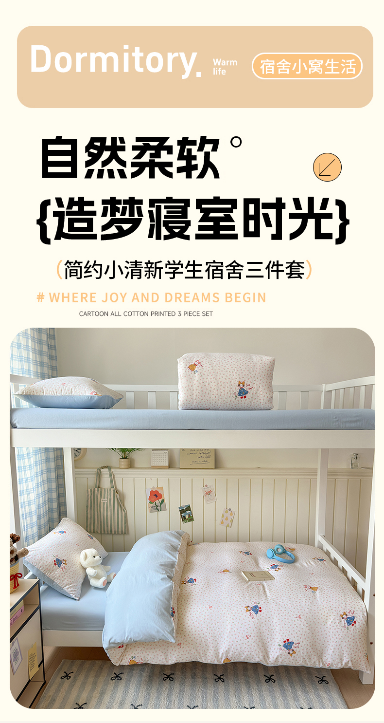 当前位置: 91家纺网 > 商品网购 > 床品套件 > 三件套 > 沐芷 2025 开学季学生宿舍三件套 水洗棉四件套被套床单 甜心派派