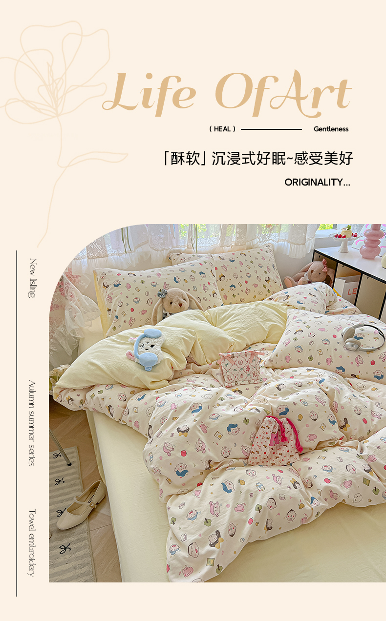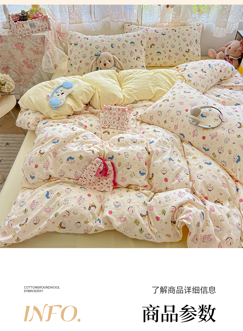 当前位置: 91家纺网 > 商品网购 > 床品套件 > 四件套 > 水洗棉四件套 > 盼季家纺 2025新款A类水洗棉印花双拼床上用品四件套学生宿舍床笠三件套 简单款-三个好朋友