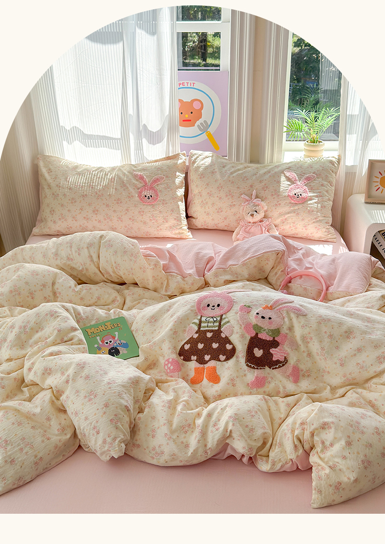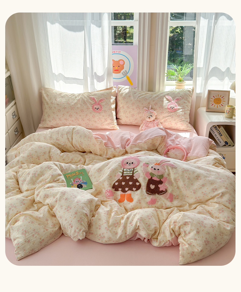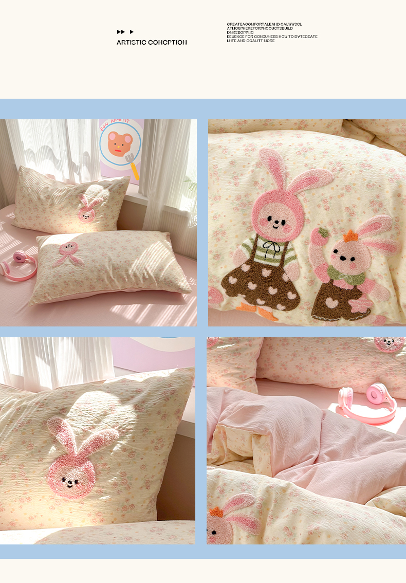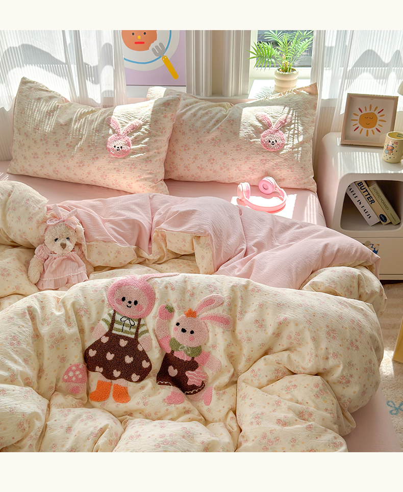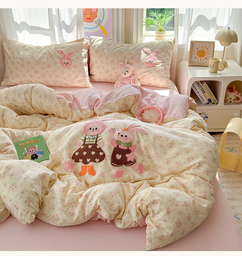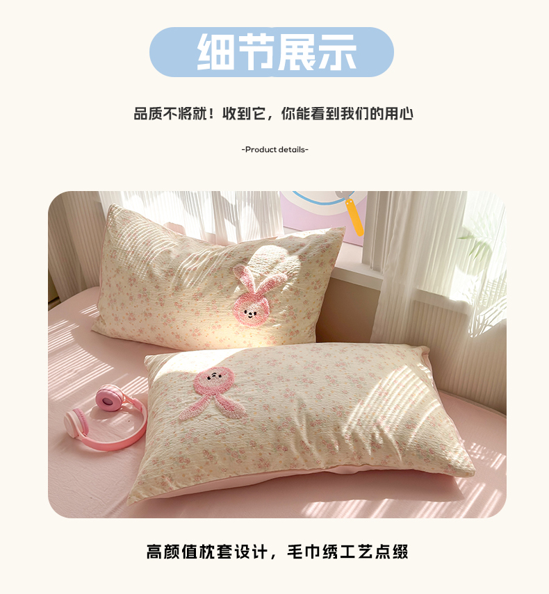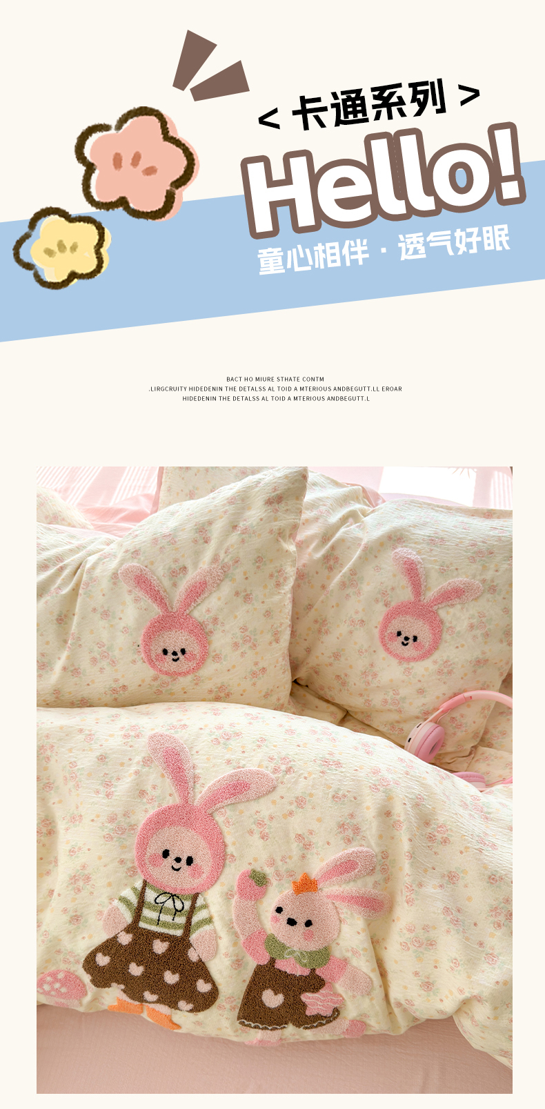 当前位置: 91家纺网 > 商品网购 > 床品套件 > 四件套 > 其它四件套 > 罗亿家纺 2025新款云感双层纱卡通毛巾绣四件套(小清新系列)) 兔芭比