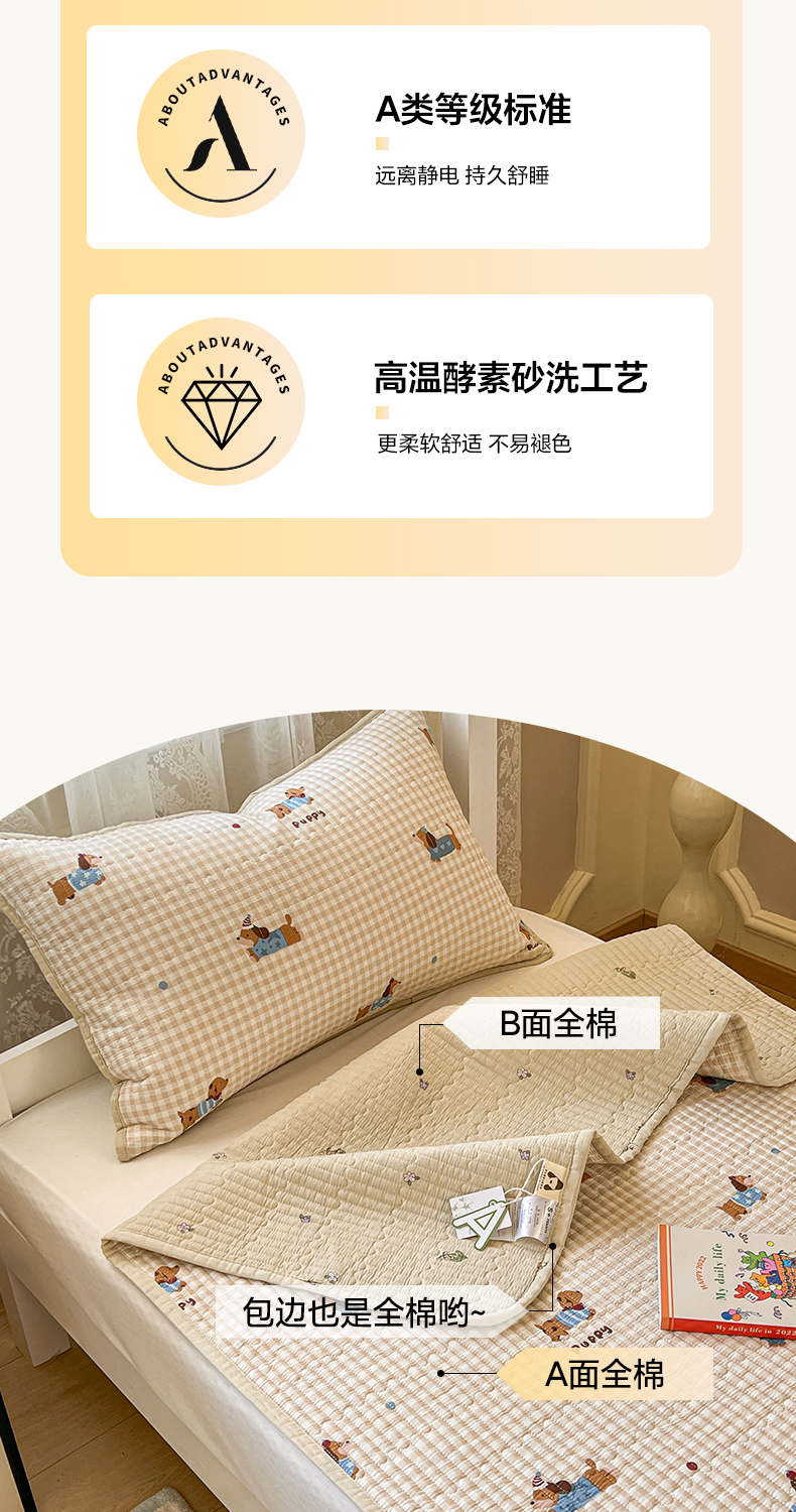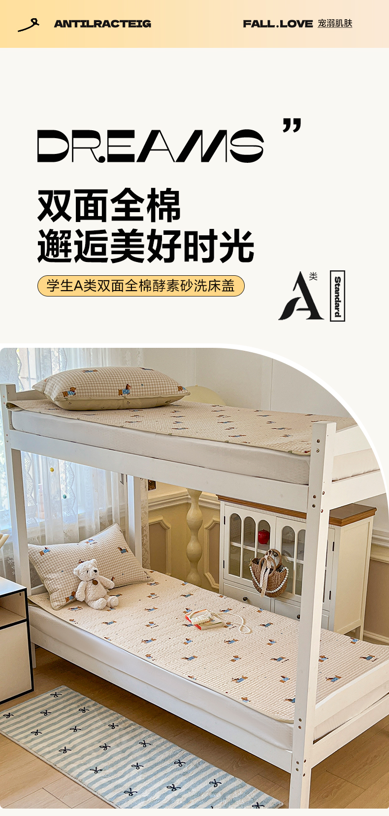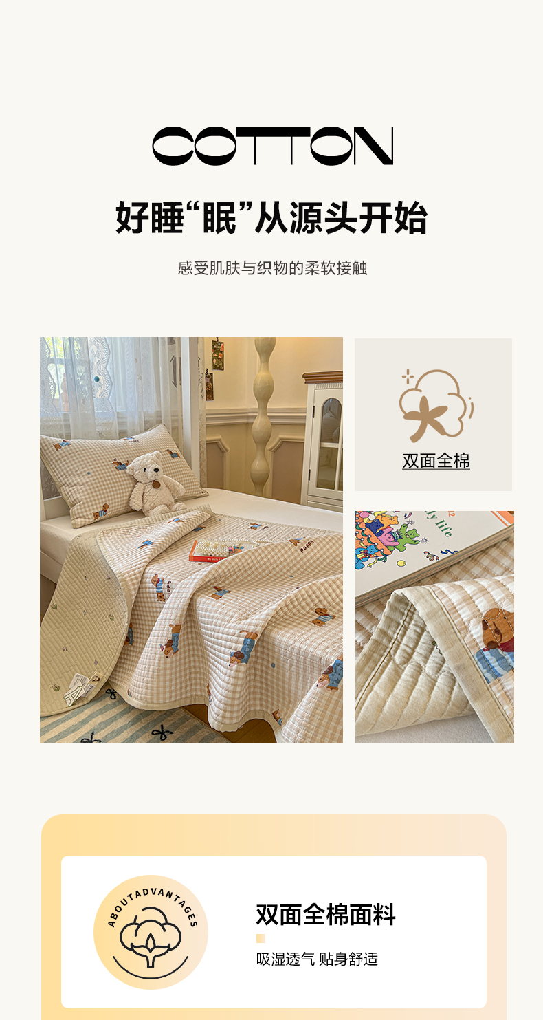 (总)舒居家纺 2025新款学生高温酵素砂洗双面全棉纯棉床盖,爱心木马,比利小熊,格子樱桃,花季少女,花开无声咖,花睿--青草绿,洛林--粉,迷彩花兔,俏皮狗,兔兔乐园,小汽车