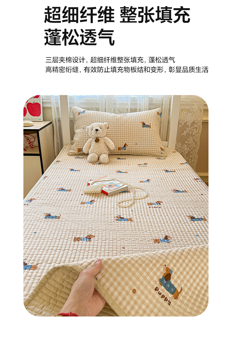 (总)舒居家纺 2025新款亲肤夹棉卡通 防水床笠床垫席梦思床套床罩(不宜机洗,建议手洗)),奥利奥小熊,靠谱小狗,慢生活,奶猫,丝带飞飞兔,甜甜黄油熊,小波点,小猫逃离季,小猫线球,小甜派,心跳回声,园镜兔