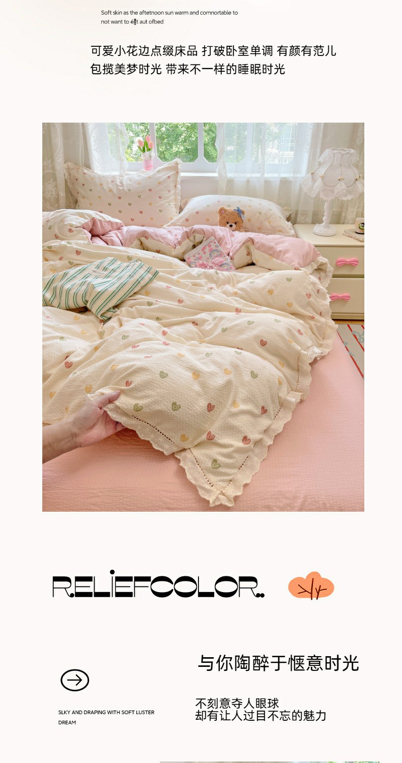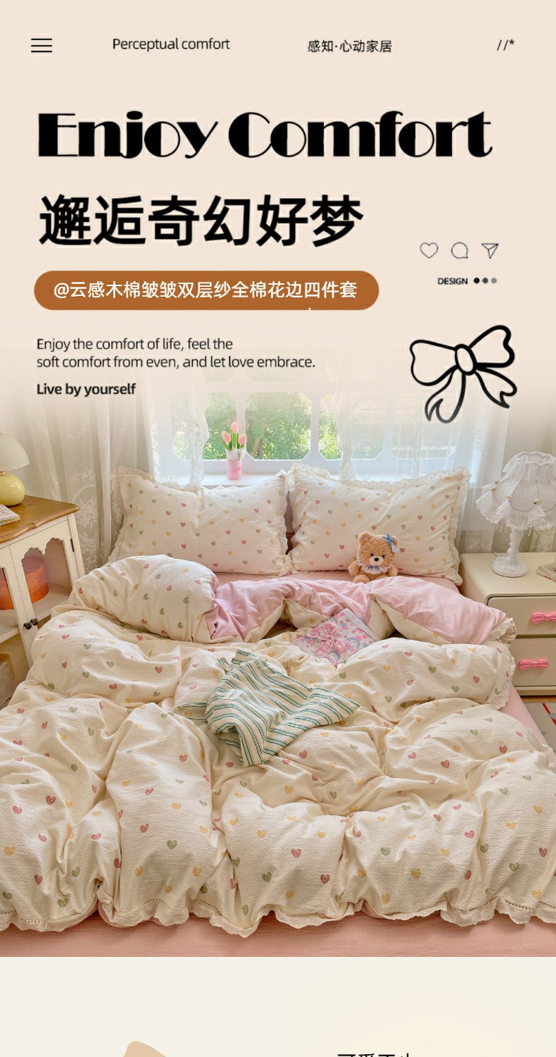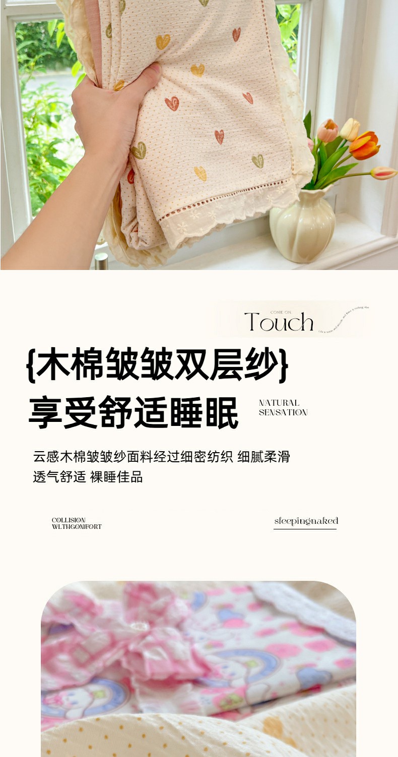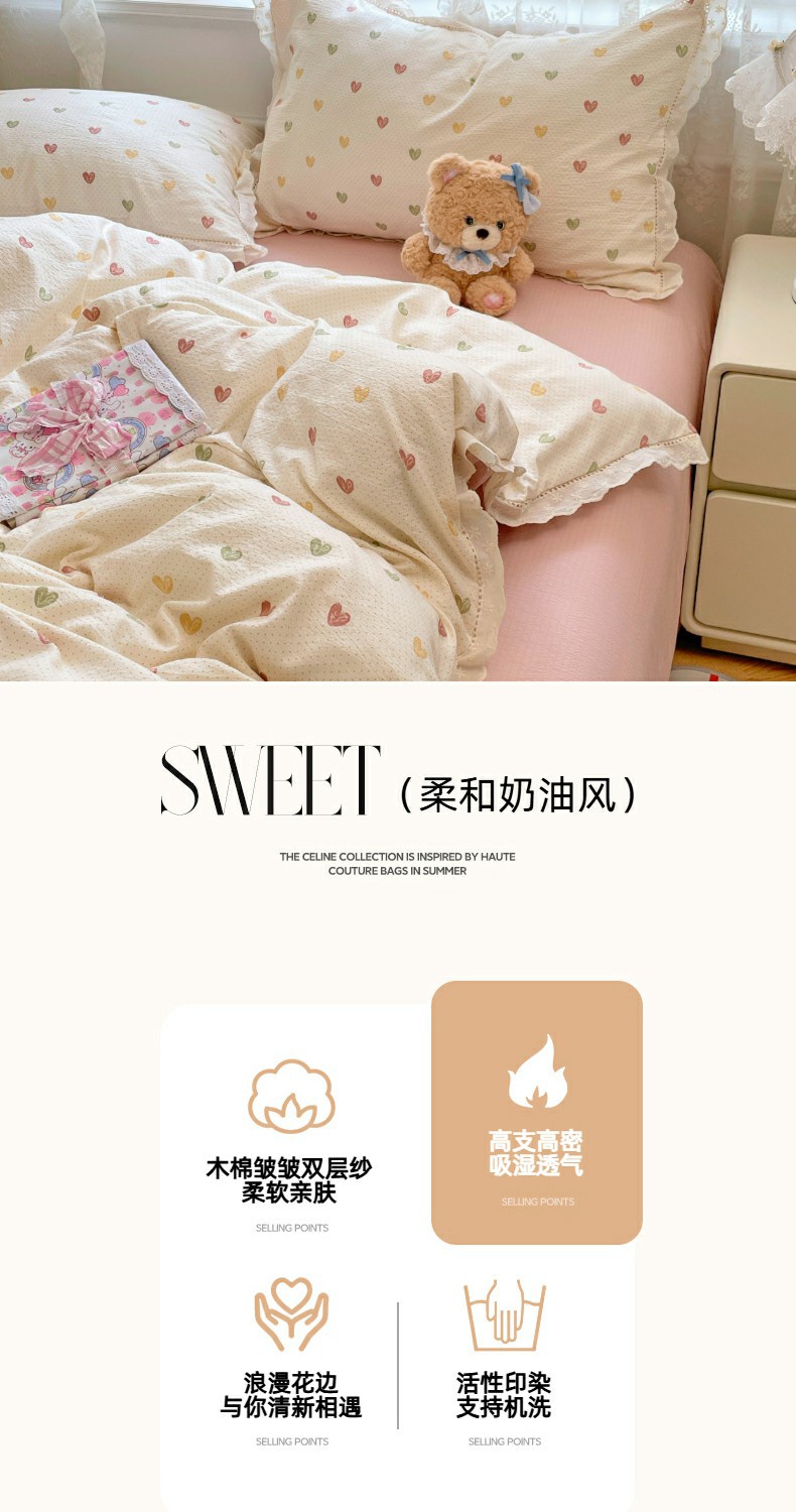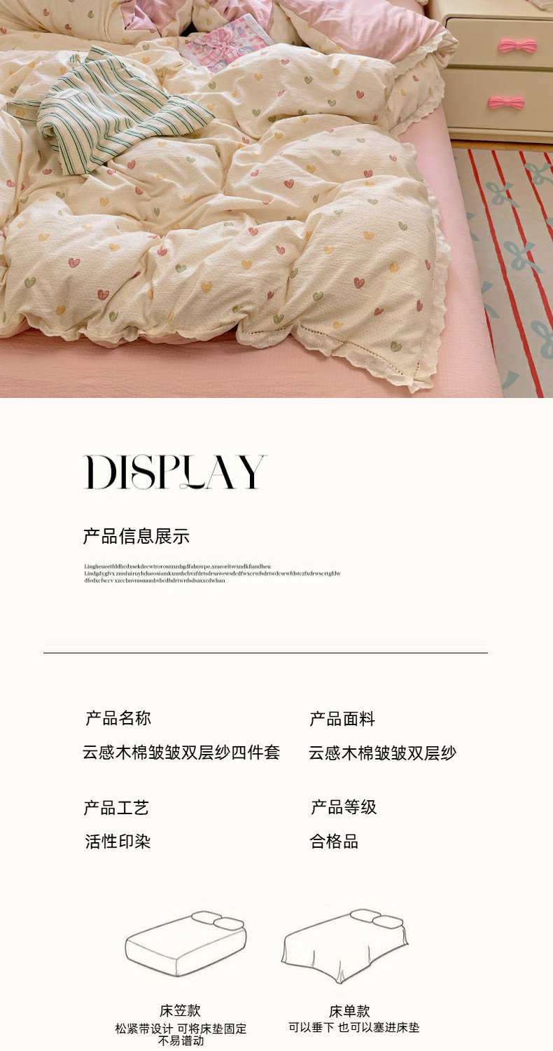 当前位置: 91家纺网 > 商品网购 > 床品套件 > 四件套 > 全棉普通四件套 > 优佳优品 2025新款A类云感木棉皱皱双层纱全棉镂空花边四件套(提供买家秀) 砰然心动