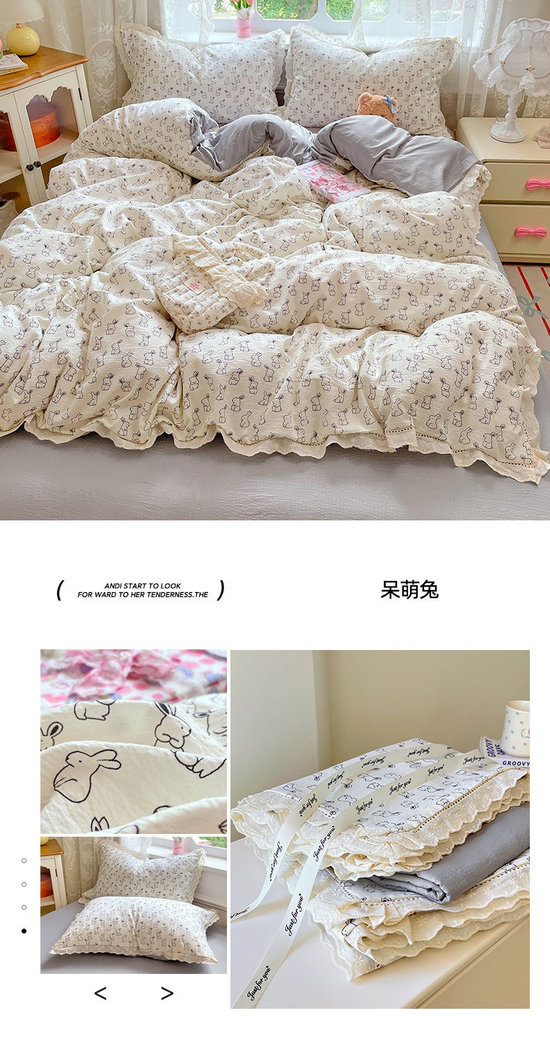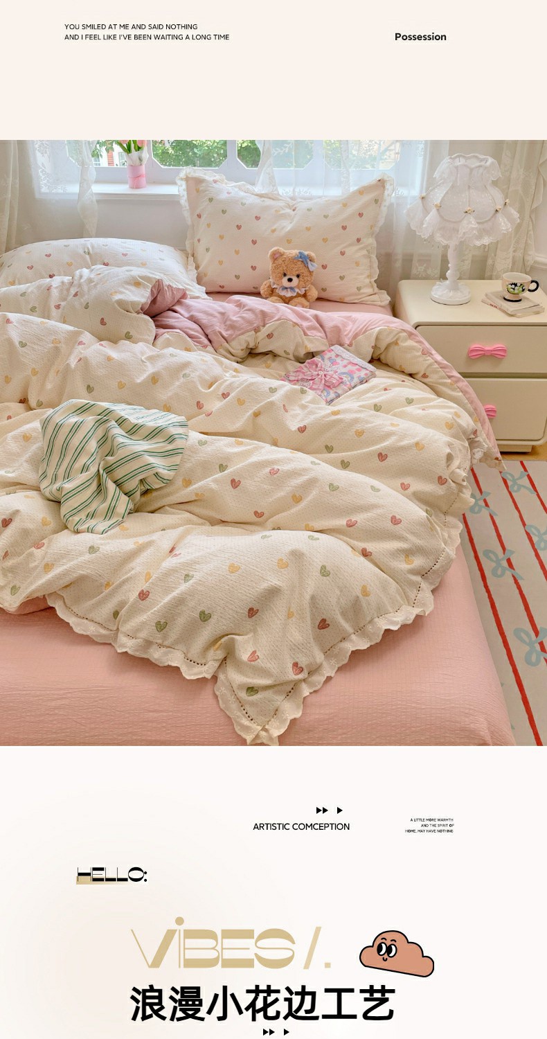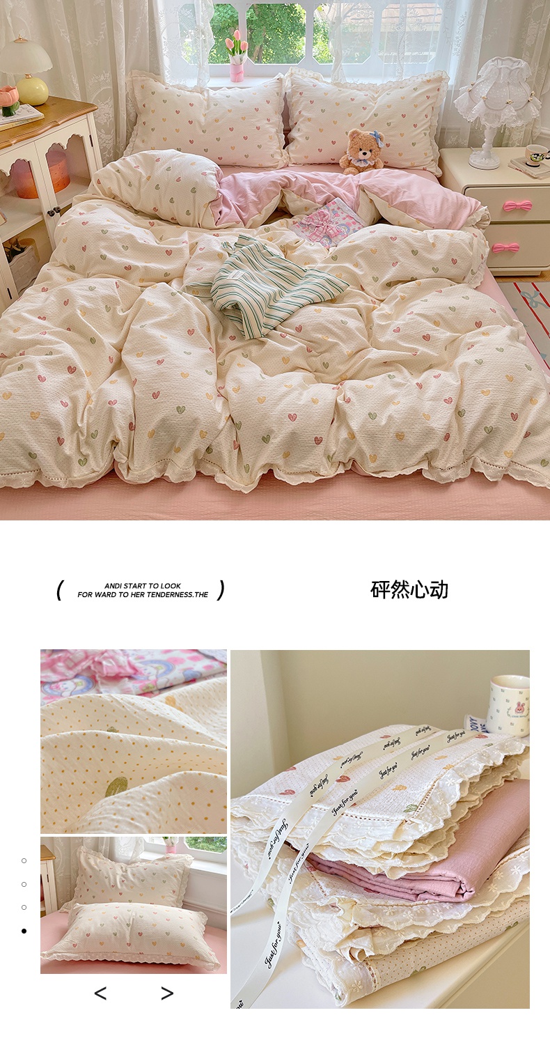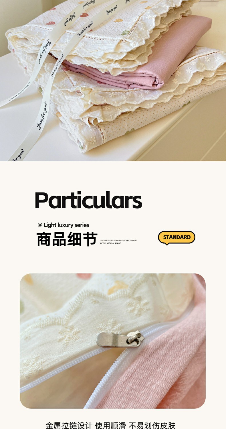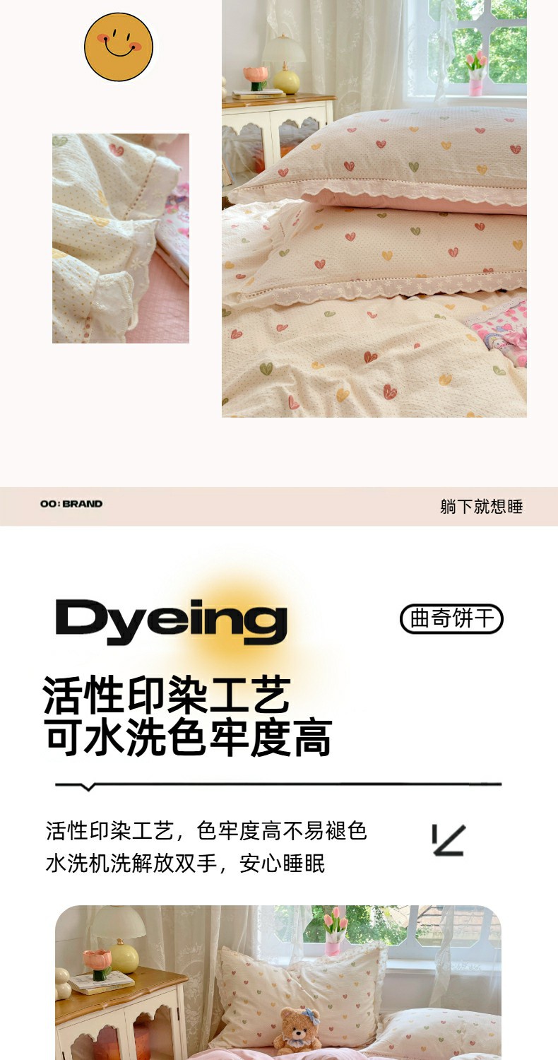 当前位置: 91家纺网 > 商品网购 > 床品套件 > 四件套 > 全棉普通四件套 > 优佳优品 2025新款A类云感木棉皱皱双层纱全棉镂空花边四件套(提供买家秀) 砰然心动
