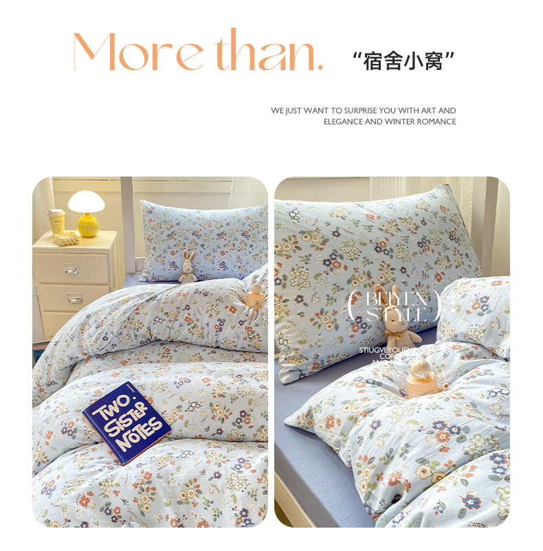 当前位置: 91家纺网 > 商品网购 > 床品套件 > 三件套 > 芷凡家纺 2025新款水洗棉双层纱学生三件套四件套学生宿舍上下铺三件套 花漫晨