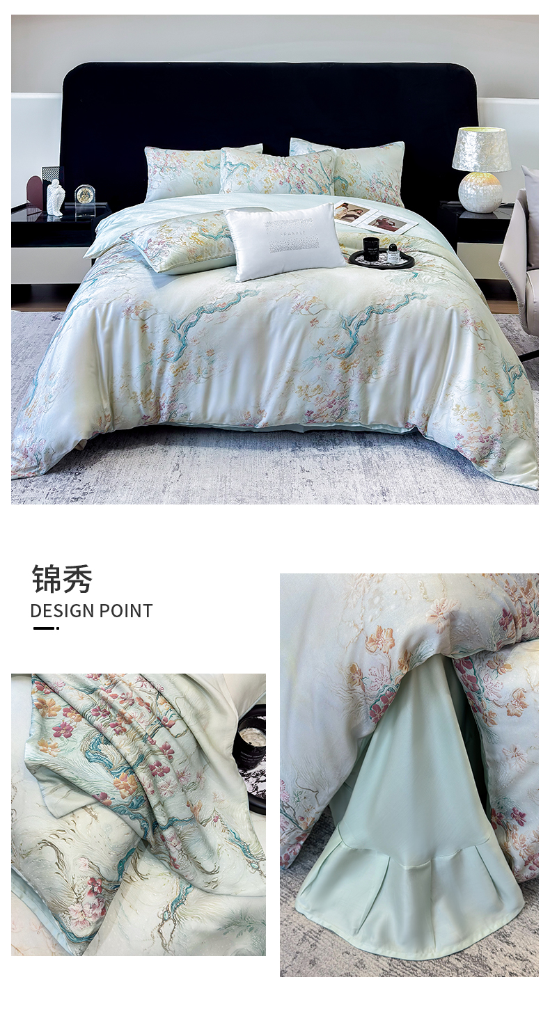商品名称:绒棉世家 2025新款60贡缎数码印花长绒棉全棉四件套 且听风铃