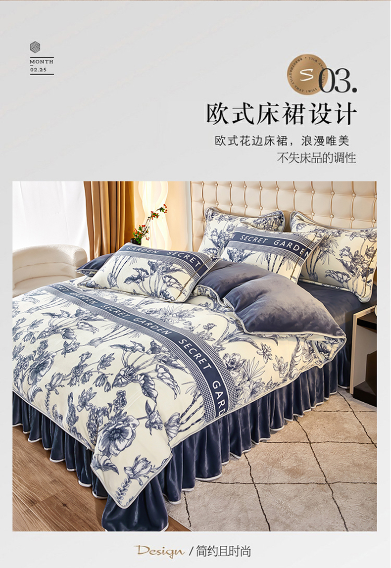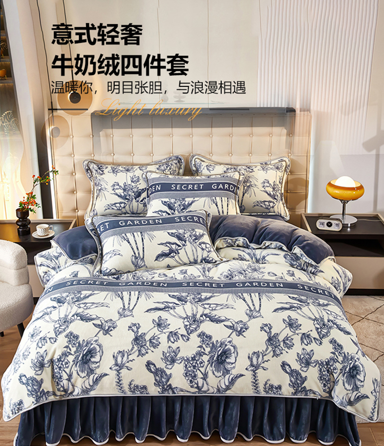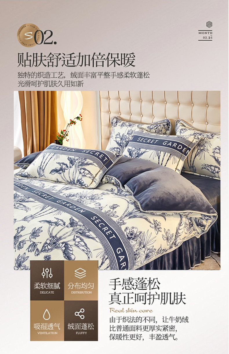栩裕 2025新款7斤重牛奶金貂绒印花牛奶绒四件套 维多利