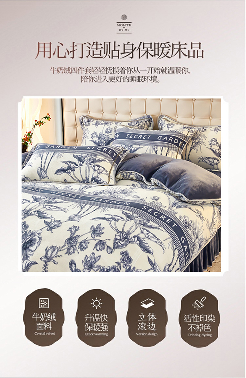(总)栩裕纺织 2025新款加厚牛奶绒床盖四件套,爱慕,爱心满满,波点咖,蝶舞飞影,米格,赛琳娜,柿柿如意,素影,同心结,之秋,紫色物语