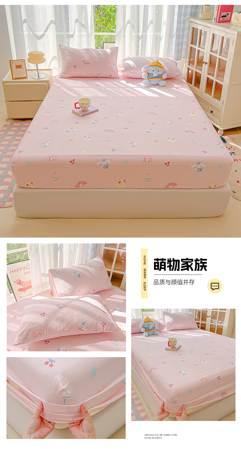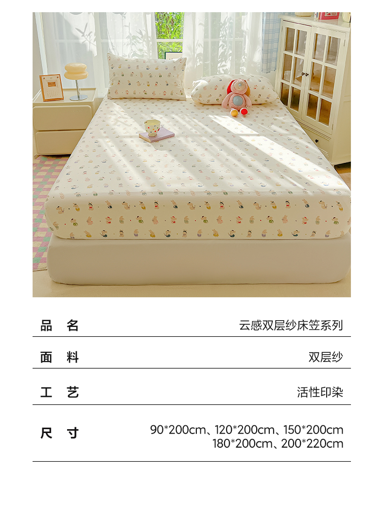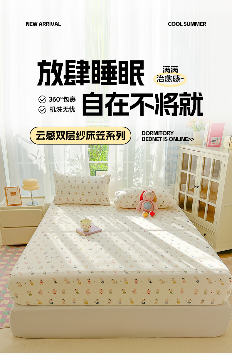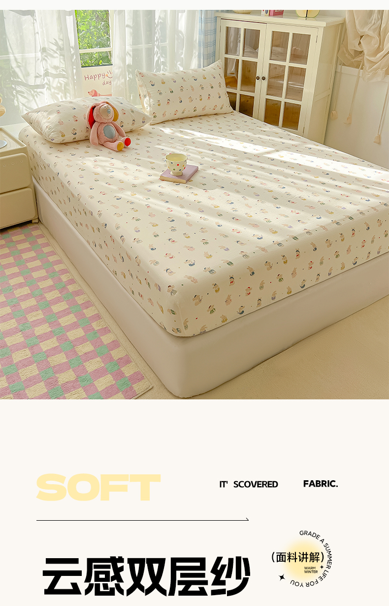 韩巢家纺 2025新款卡通双层纱床笠单品床笠床笠单件热销款防滑床单床套枕套三件套 兔子集合
