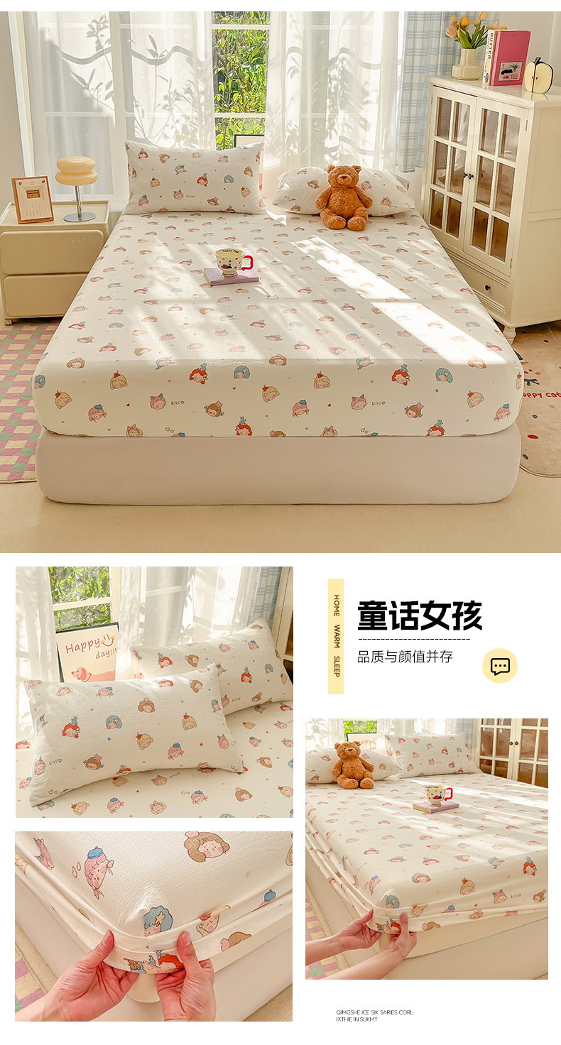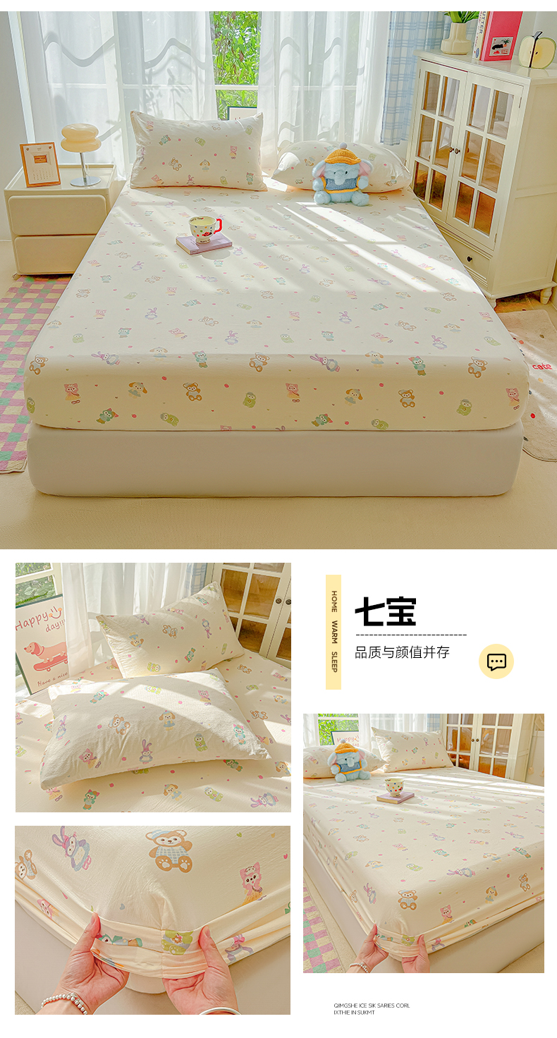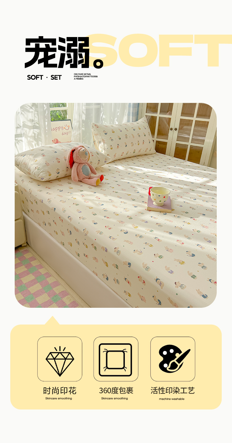 韩巢家纺 2025新款卡通双层纱床笠单品床笠床笠单件热销款防滑床单床套枕套三件套 兔子集合