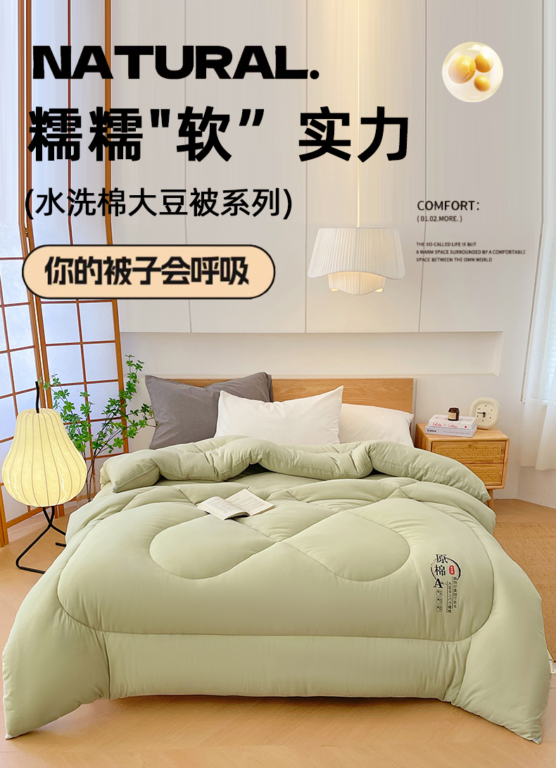 • 91家纺网 家纺一手货源 找家纺 尊妙被业 2025新款水洗棉原棉冬被被子被芯春秋被子母被直播批发(永不断货) 原棉-抹茶绿