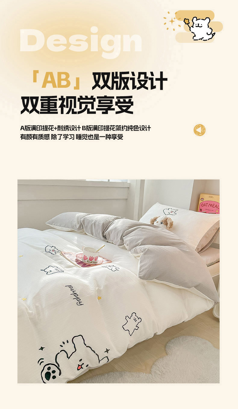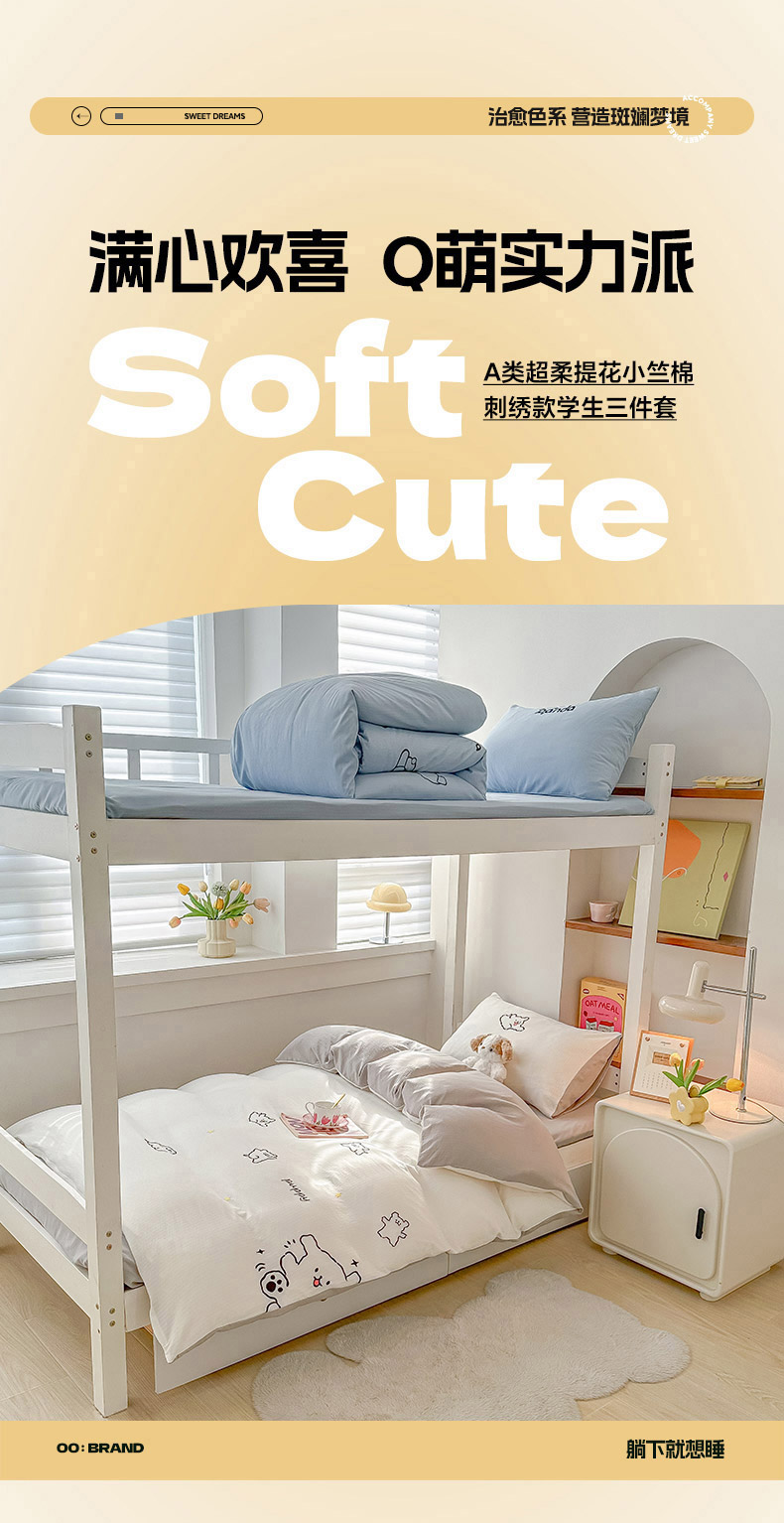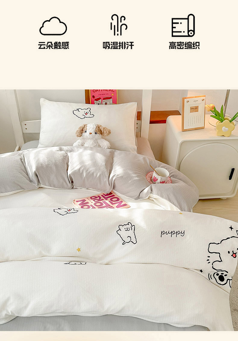 当前位置: 91家纺网 > 商品网购 > 床品套件 > 三件套 > 多乐家纺 2025新款超柔A类母婴级加厚小竺棉学生宿舍三件套上下铺三件套四件套 小白-白灰