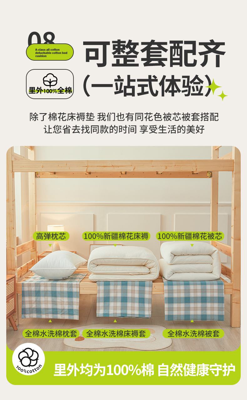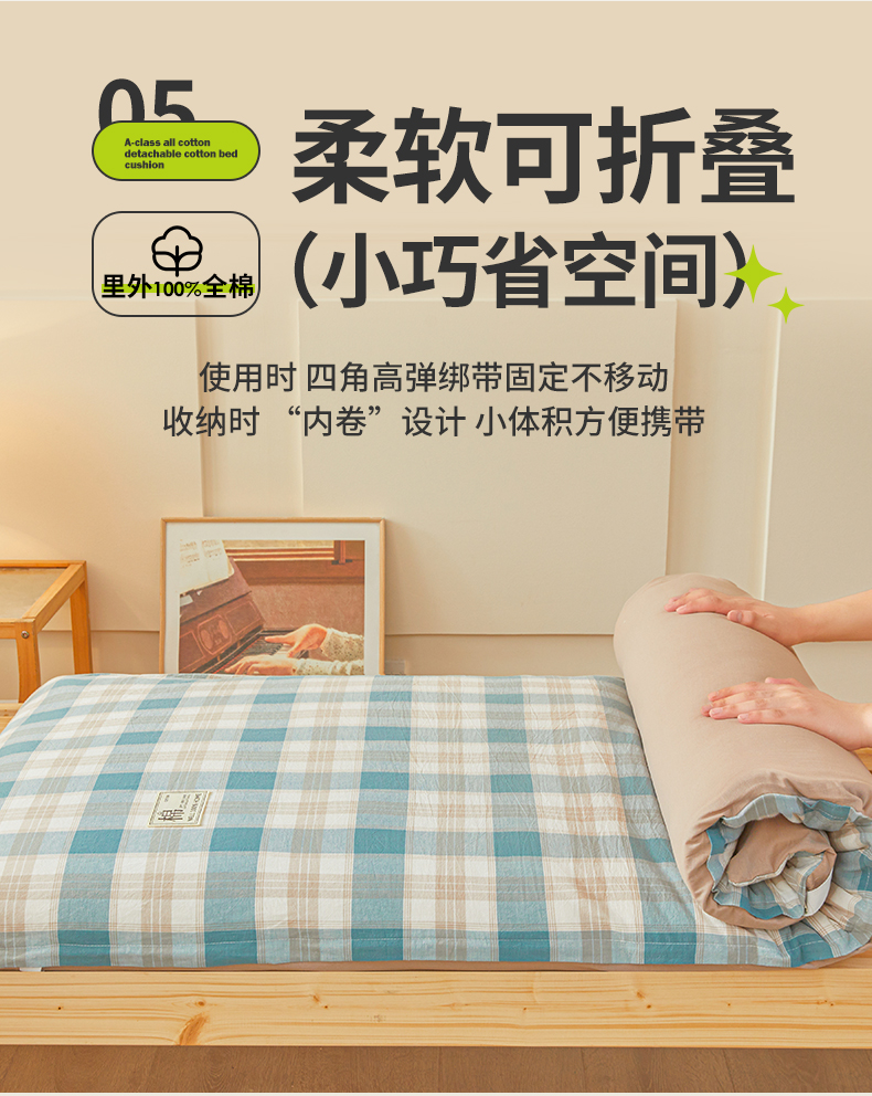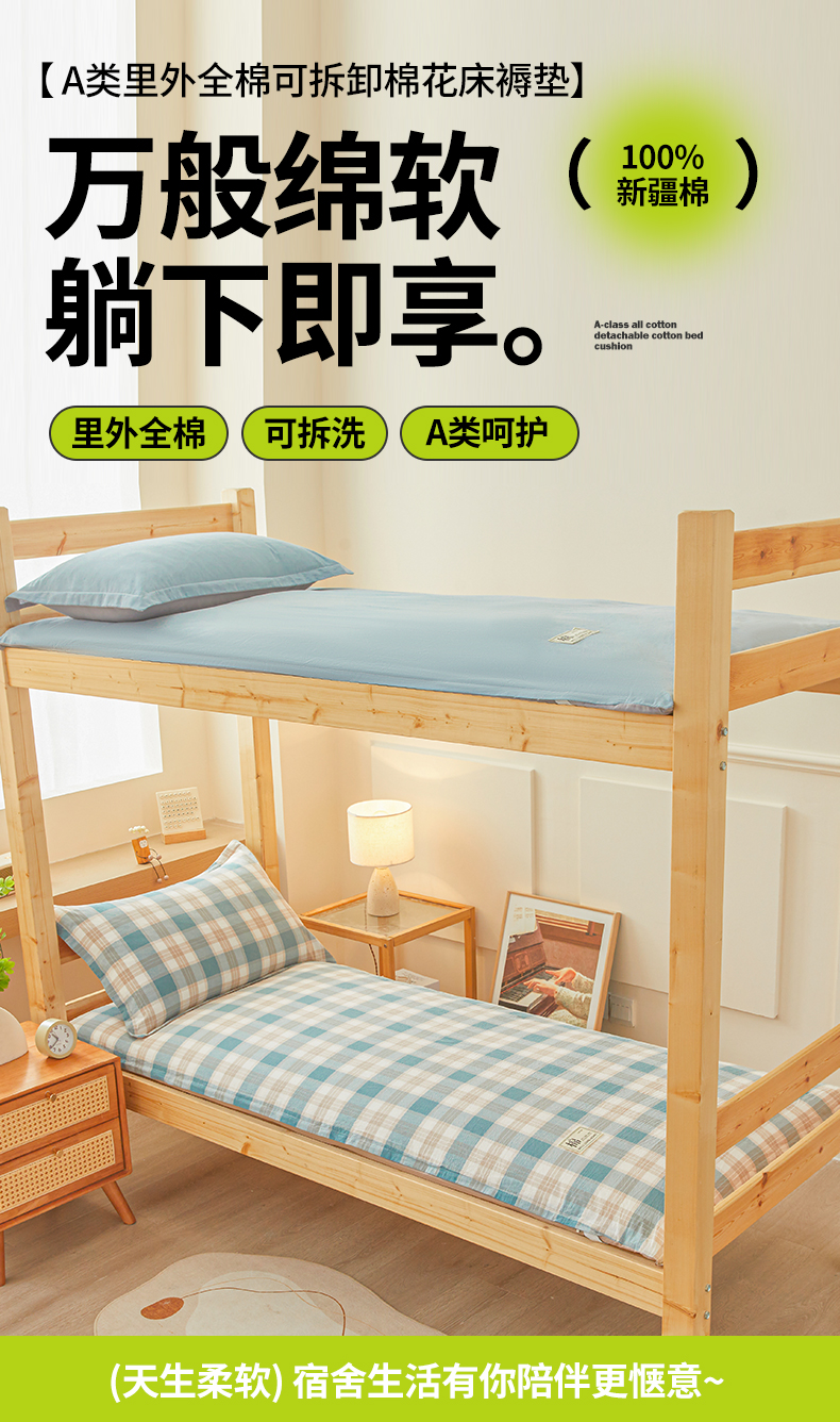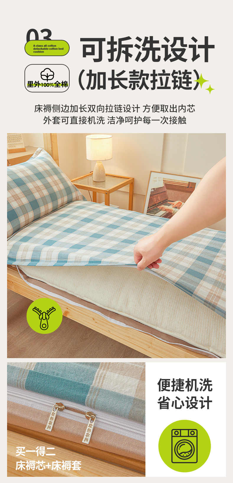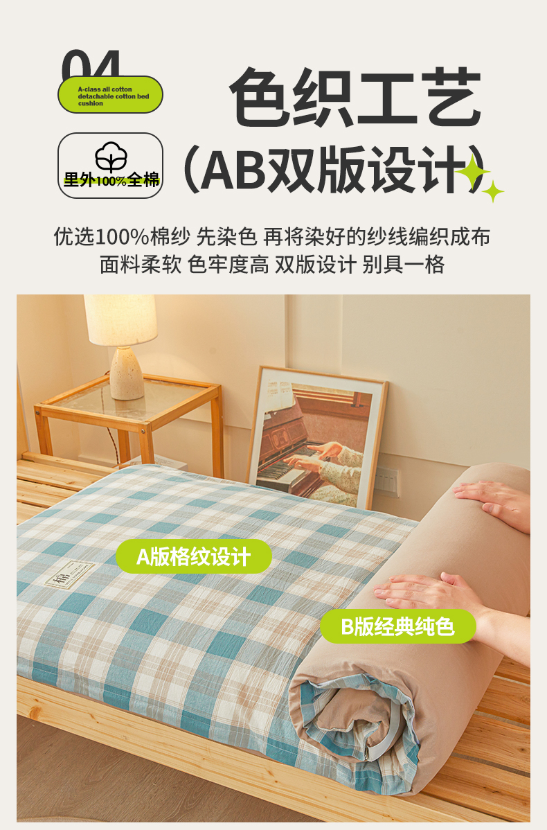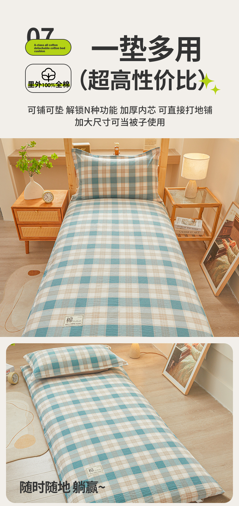 当前位置: 91家纺网 > 商品网购 > 床垫/床褥 > 普通床垫 > 西域种棉人·千百笠 2025新款A类100%棉里外全棉新疆棉花床垫宿舍学生单人床褥垫家用卧室垫被褥子 绿咖格