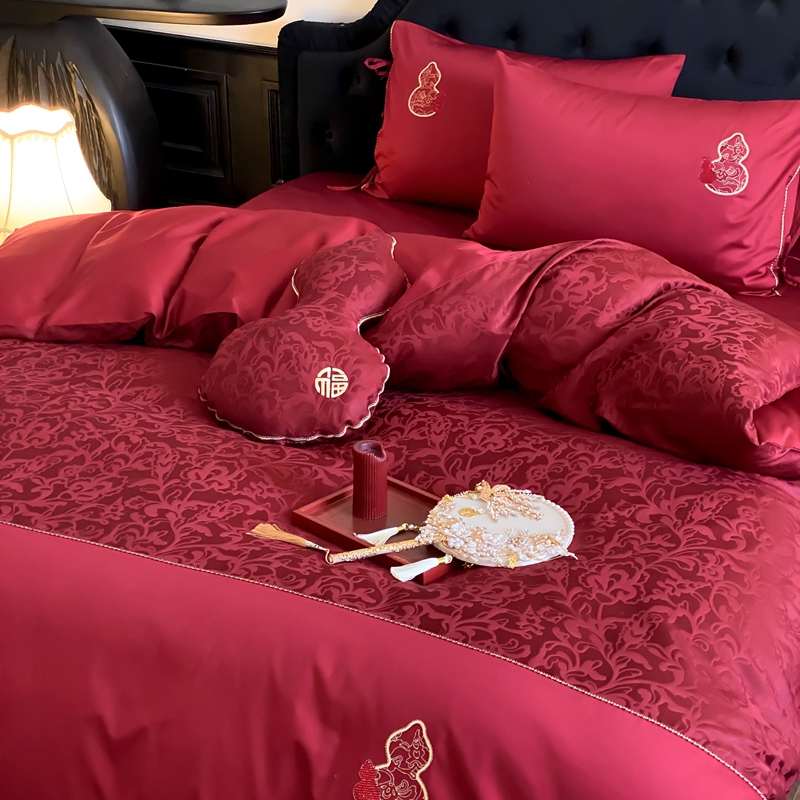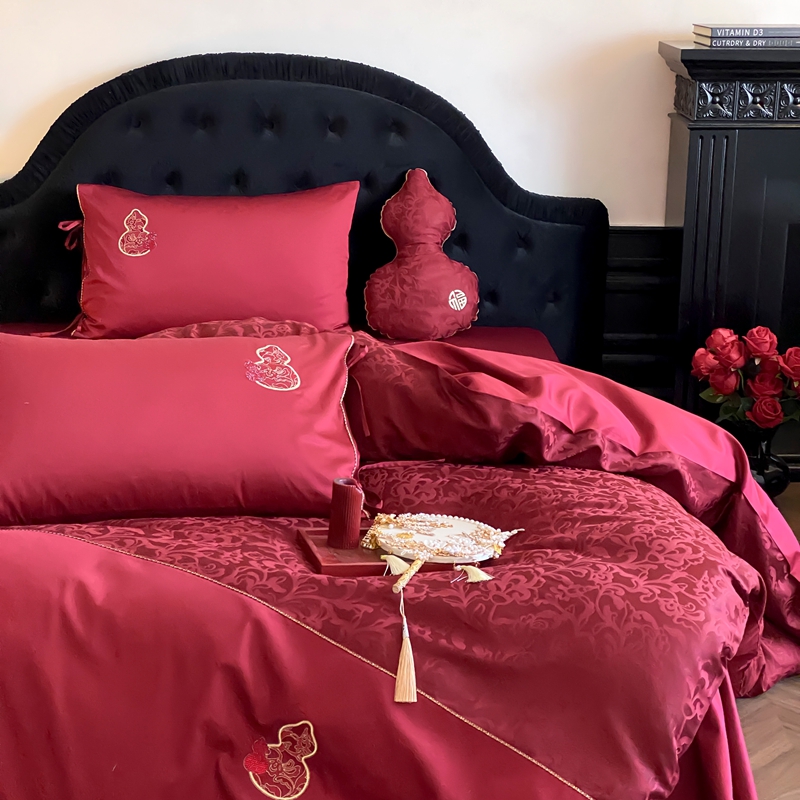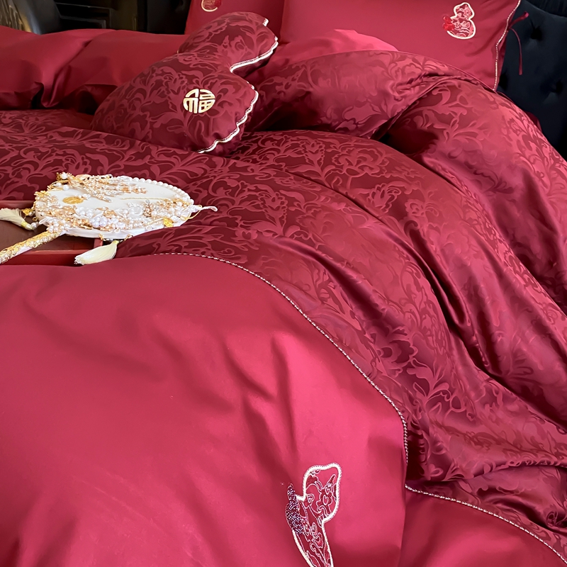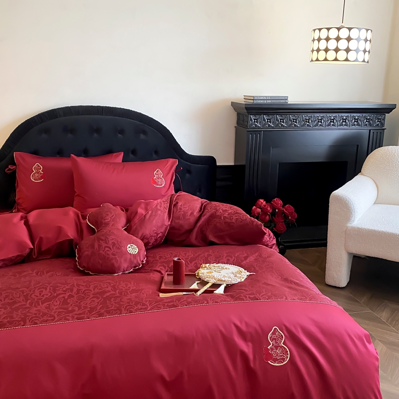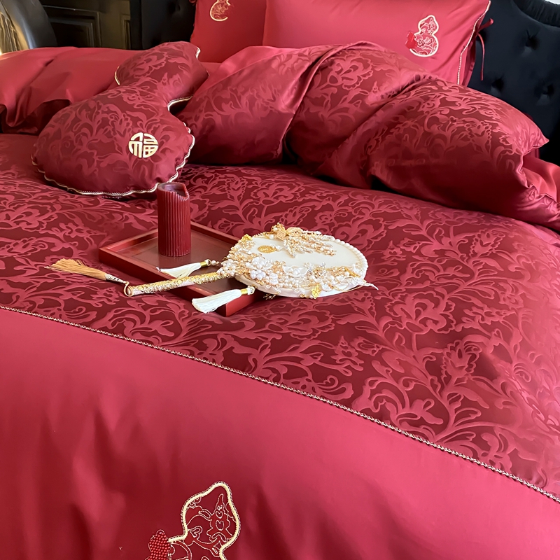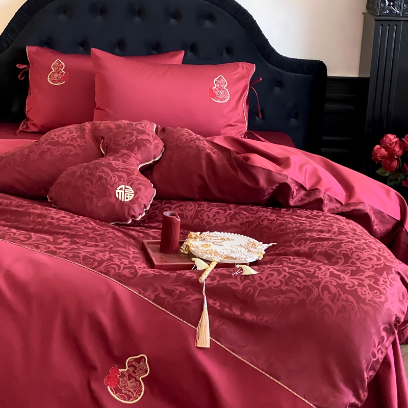 商品名称:(总)初拾 2025新款100s全棉纯棉红色提花简约婚庆四件套 福禄系列