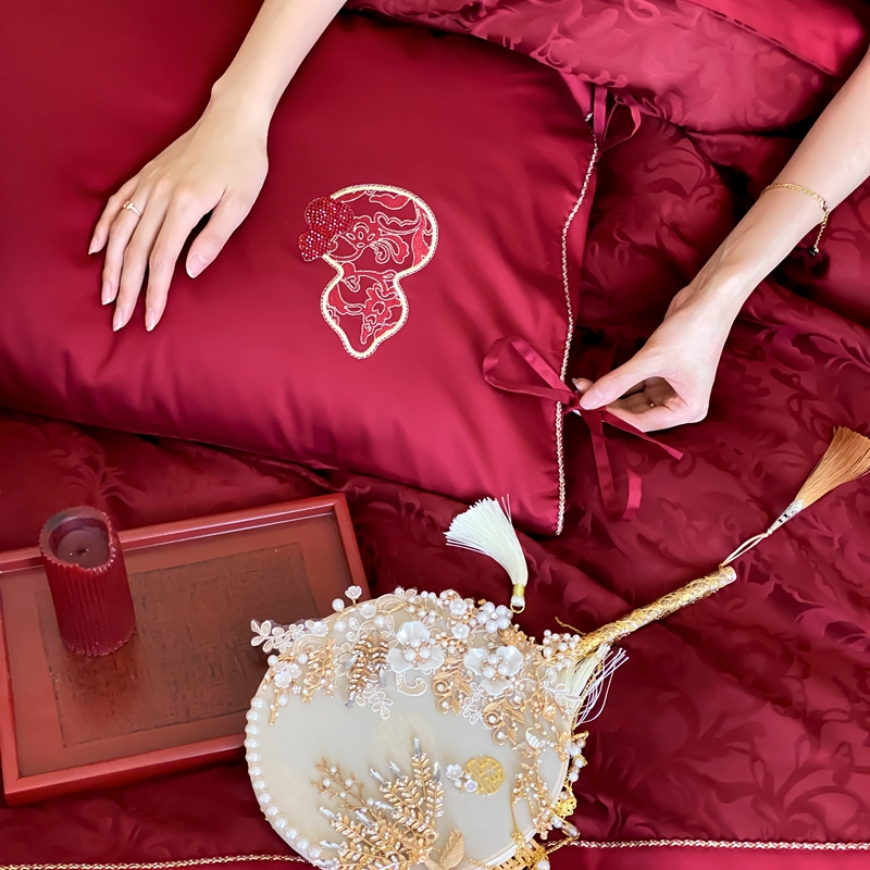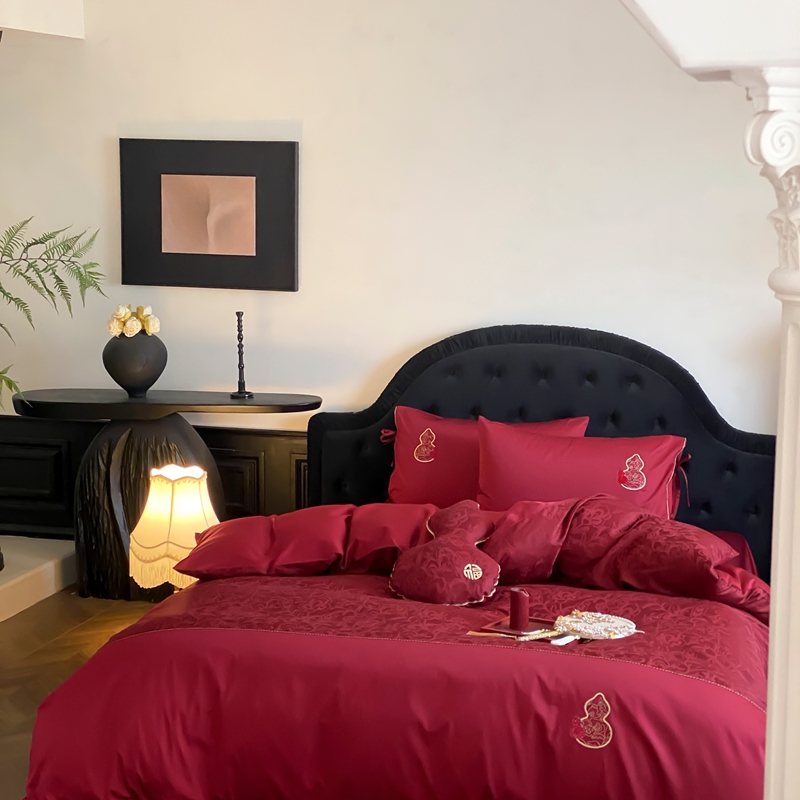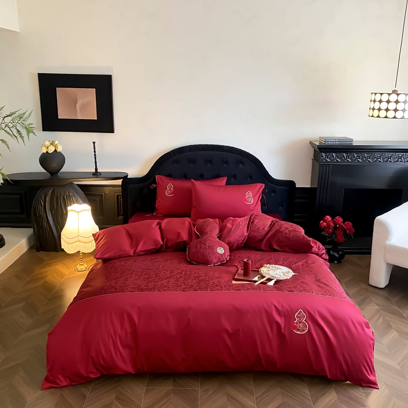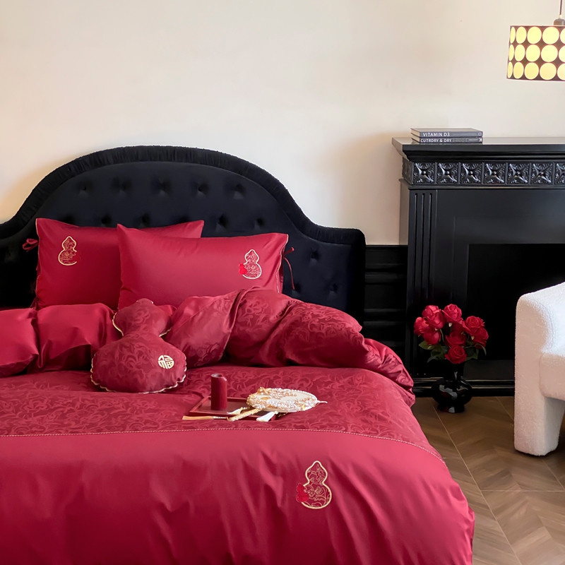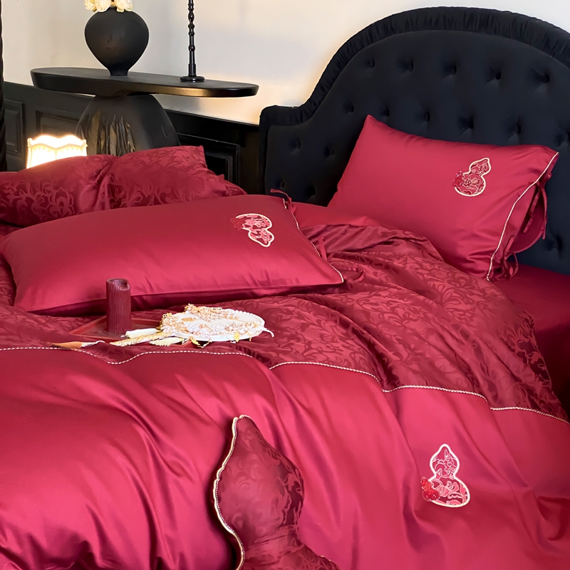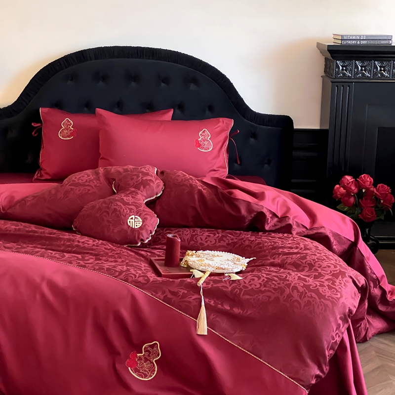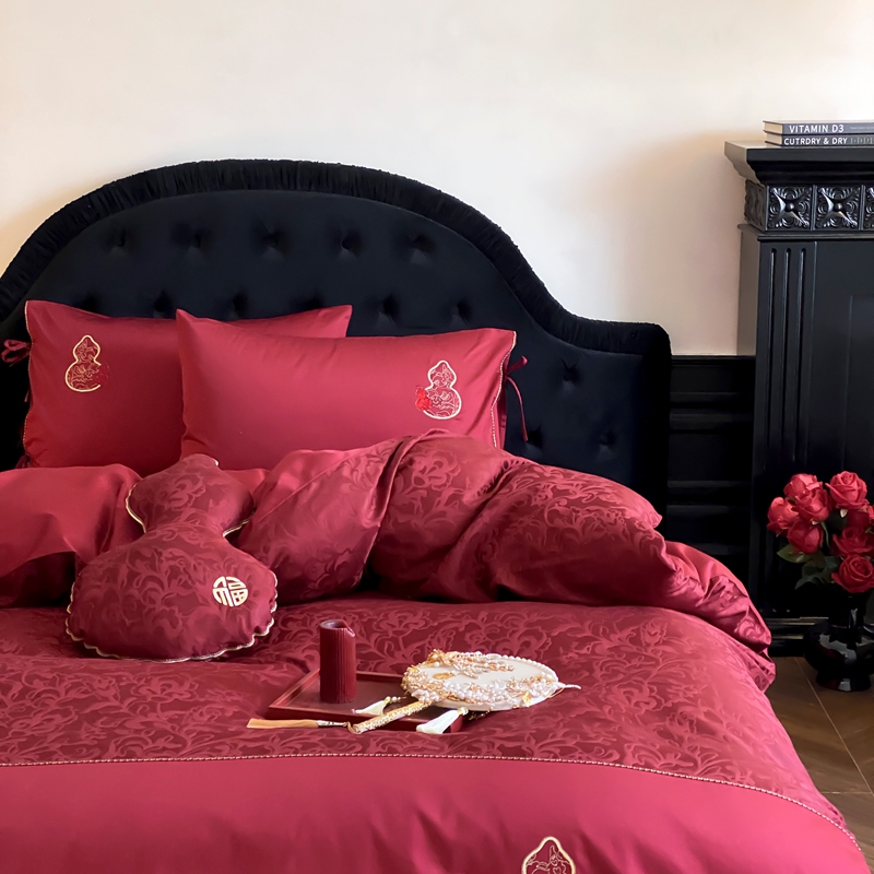 商品名称:(总)初拾 2025新款100s全棉纯棉红色提花简约婚庆四件套 福禄系列