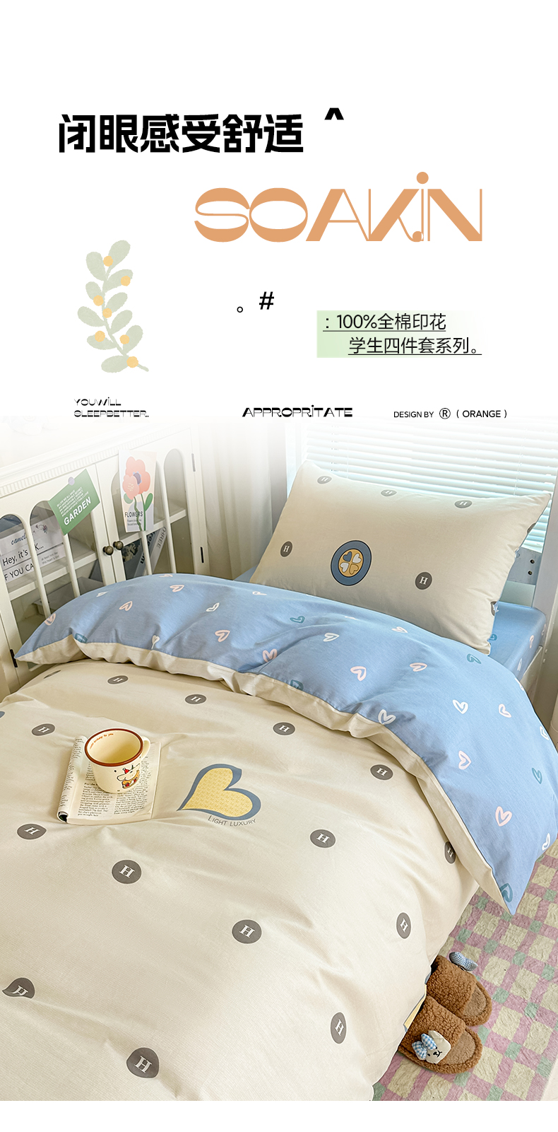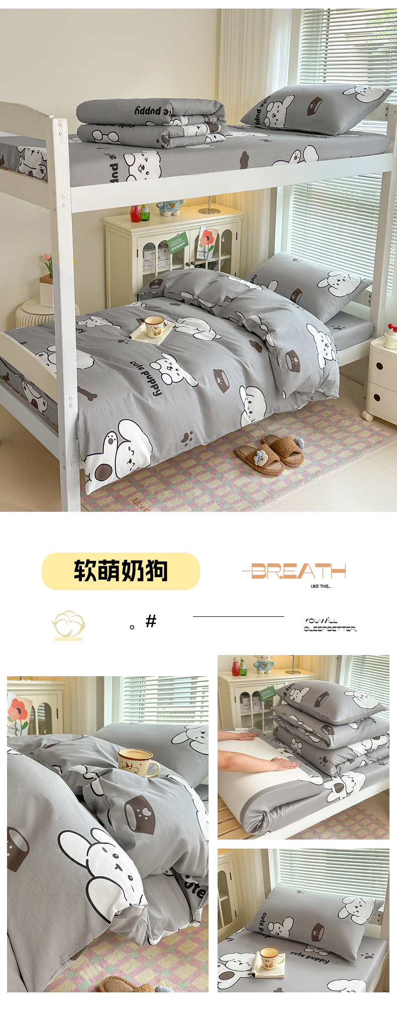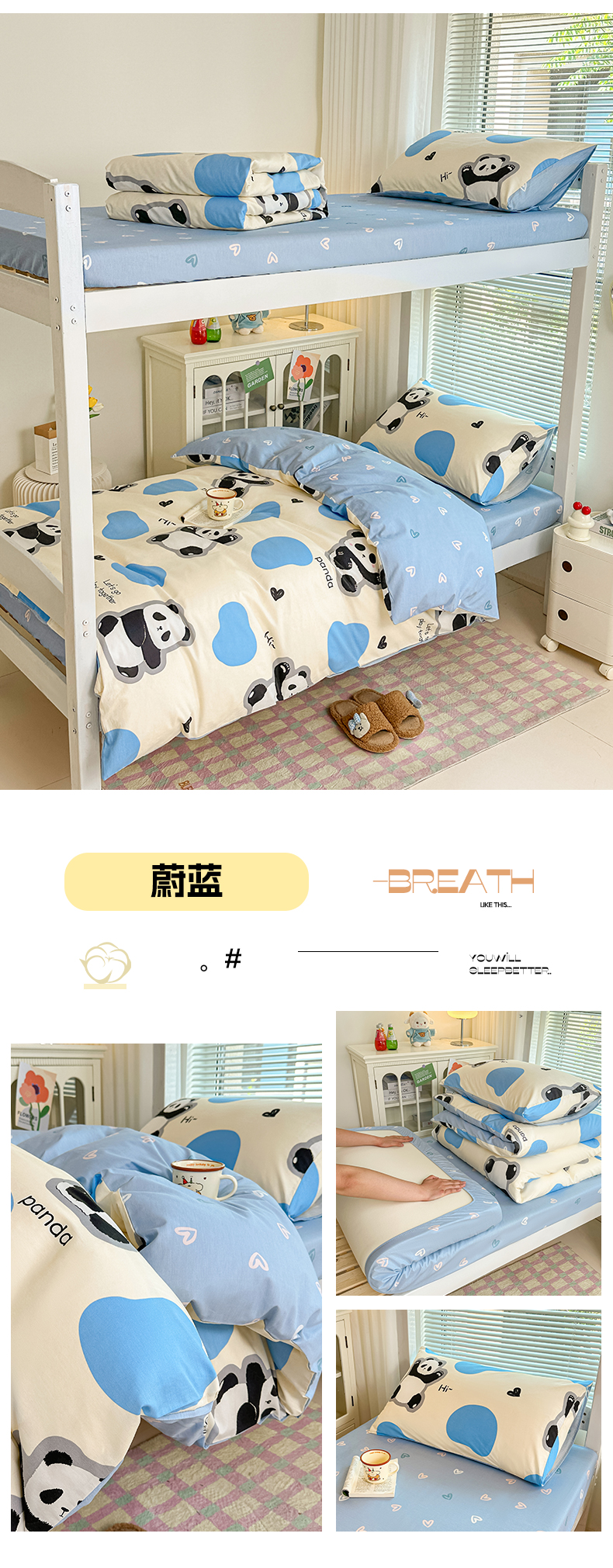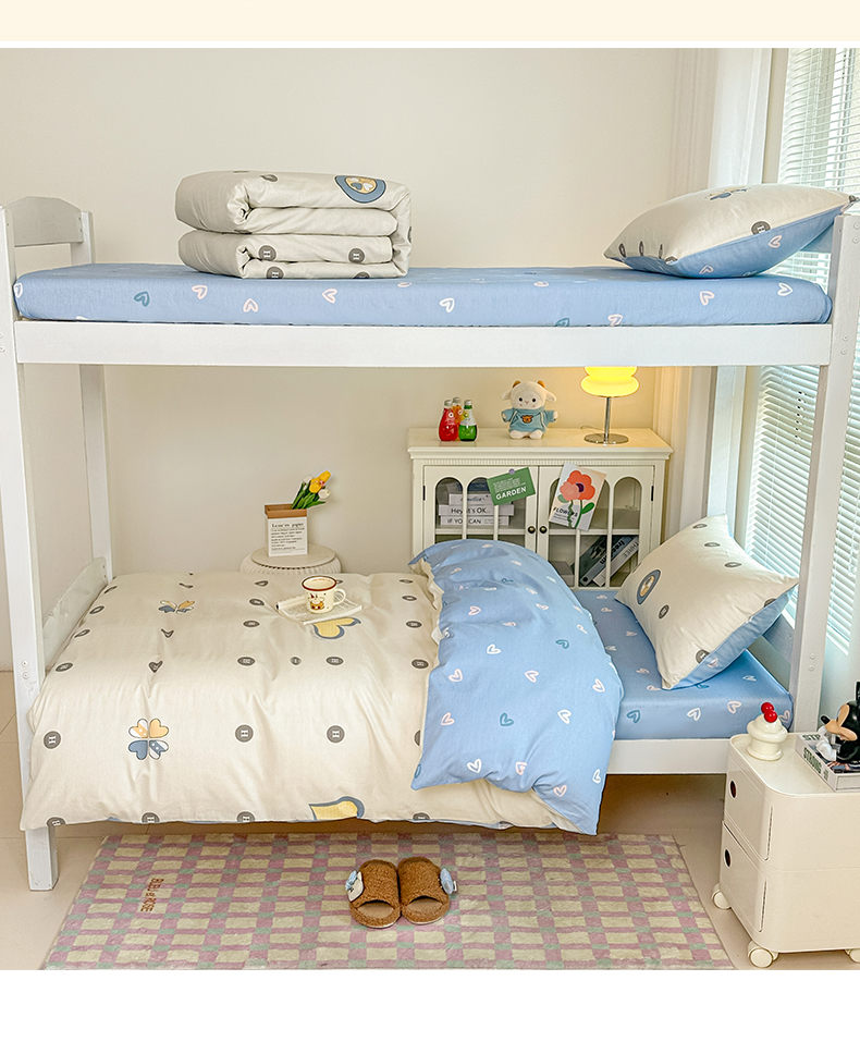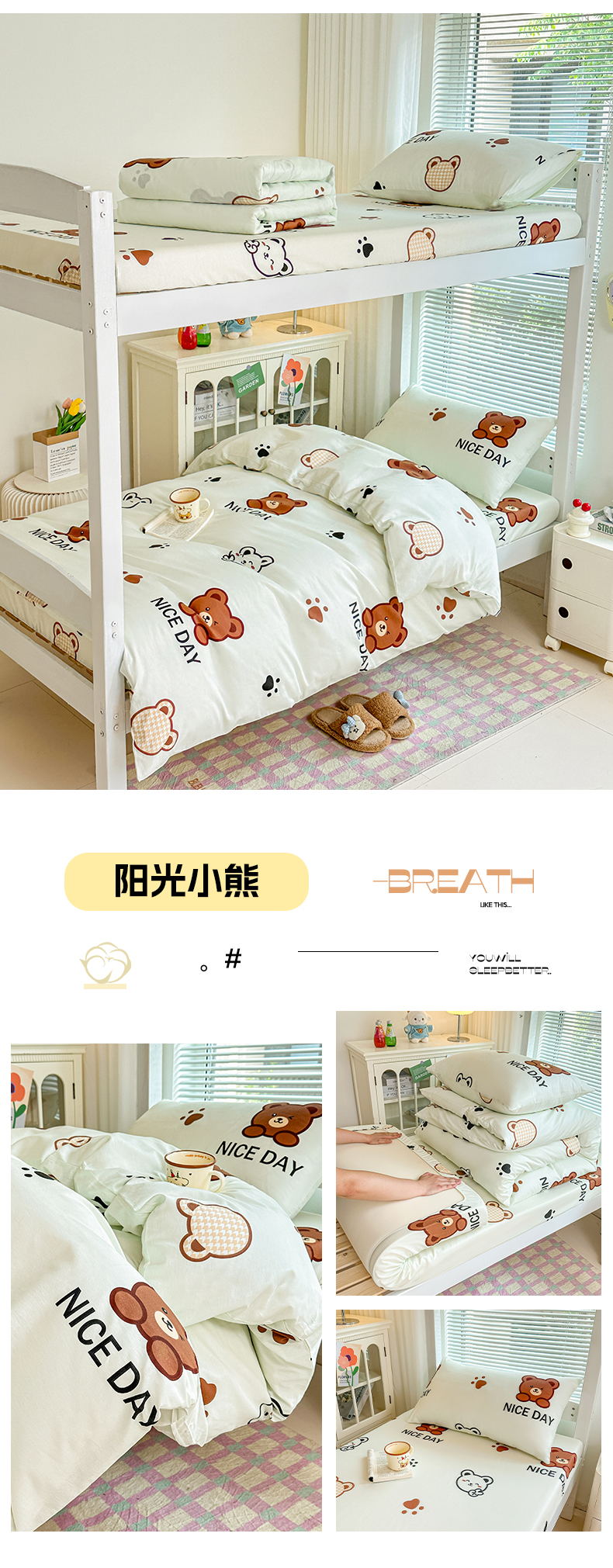 商品名称:寐眠 2025新款全棉纯棉印花学生三件套上下铺三件套 爬爬熊