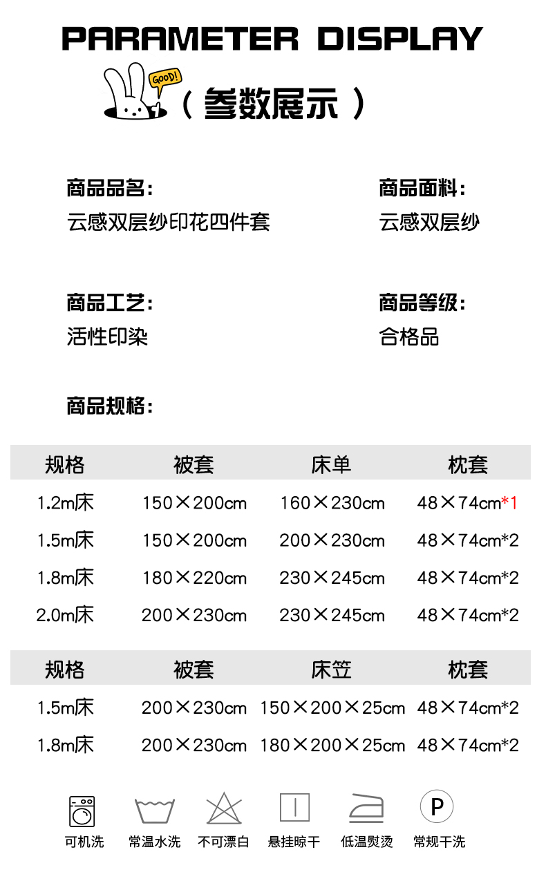 【床笠款】1.8四件套-被套200x230 | ¥57.00 |