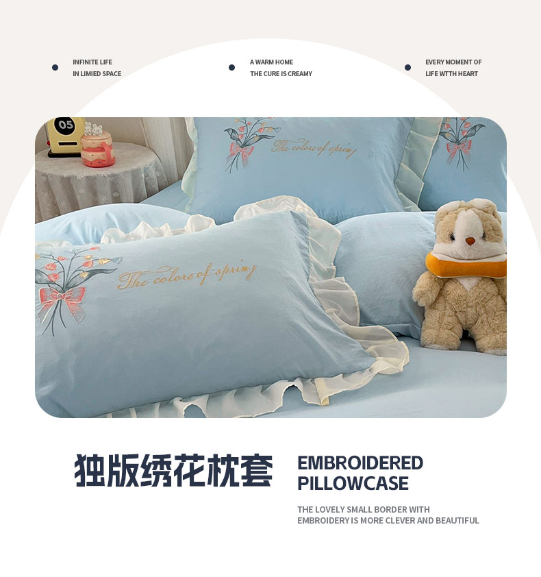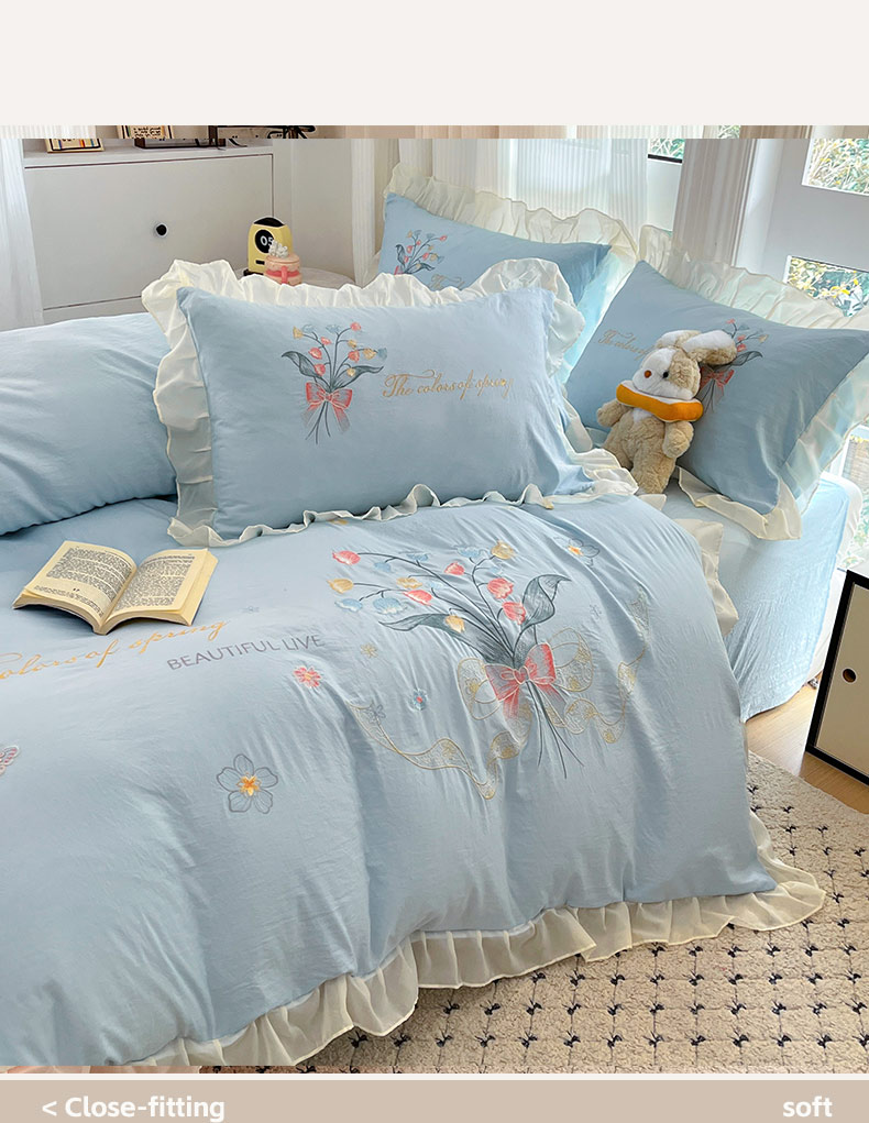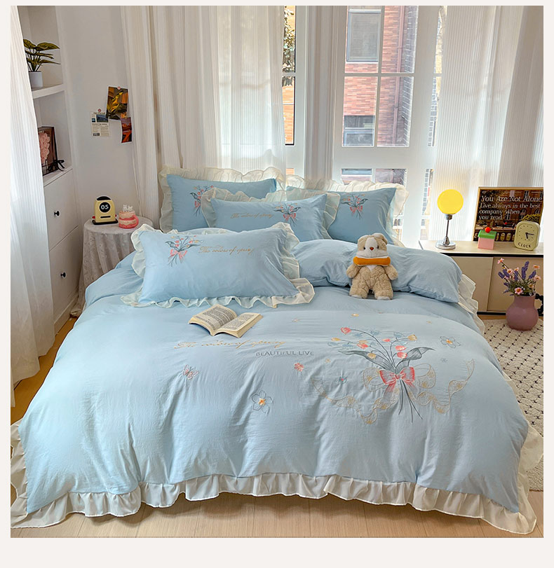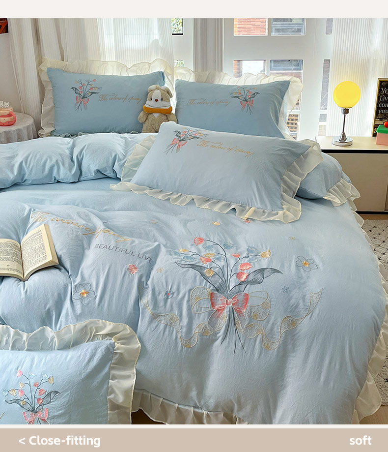 ab家纺 2025新款水洗棉绣花四件套-铃兰语 铃兰语 天空蓝