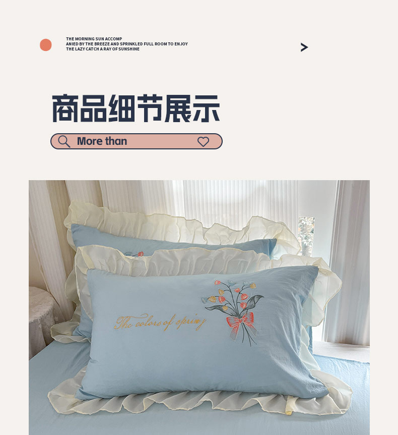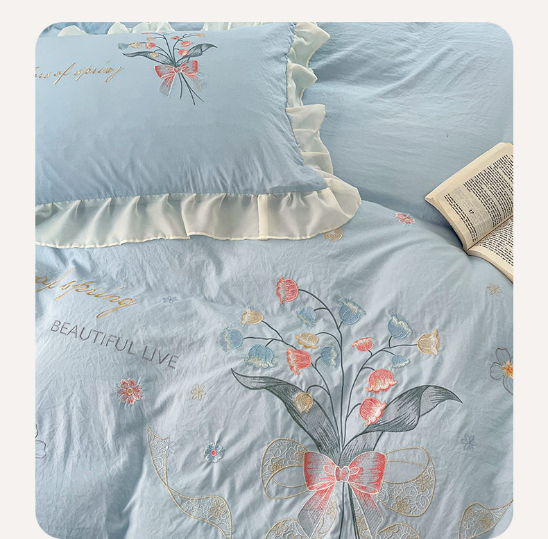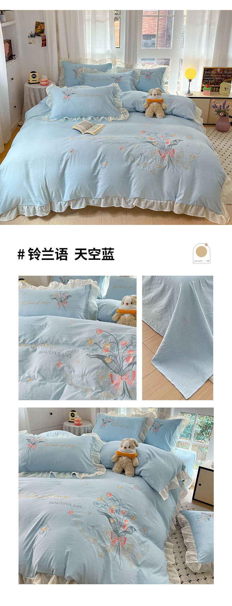 商品名称:ab家纺 2025新款水洗棉绣花四件套-铃兰语 铃兰语 天空蓝