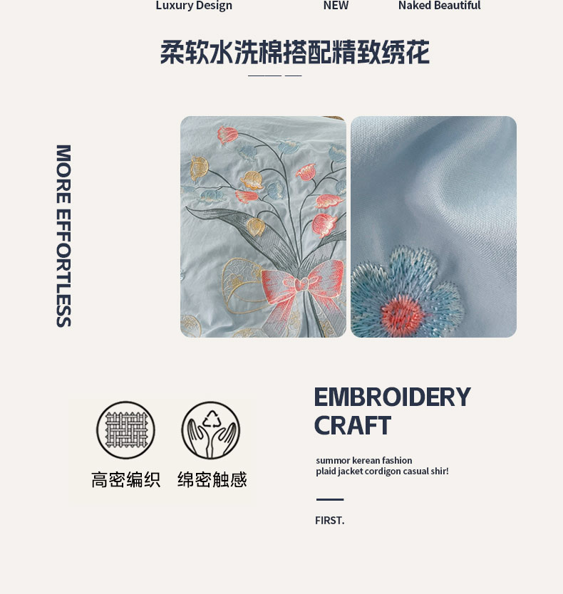(总)ab家纺 2023新款满绣水洗棉四件套,本白,鹅黄,浅粉,浅灰,浅蓝,浅紫,水兰