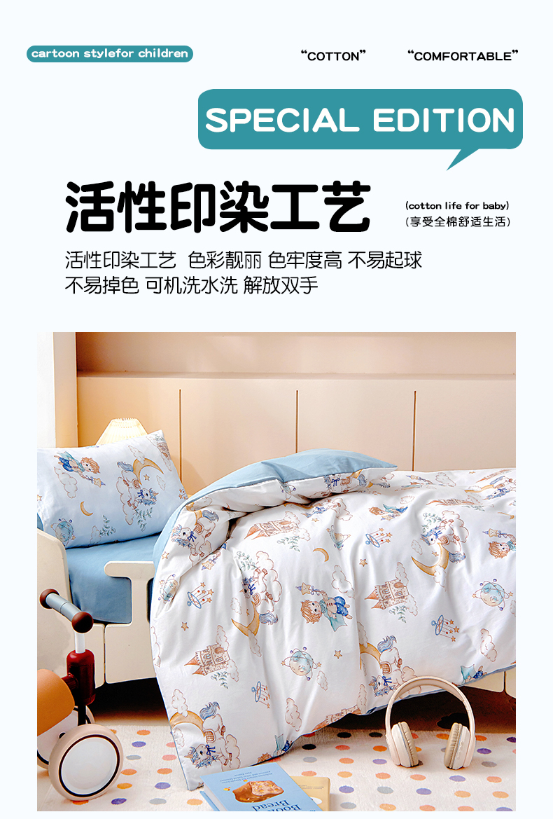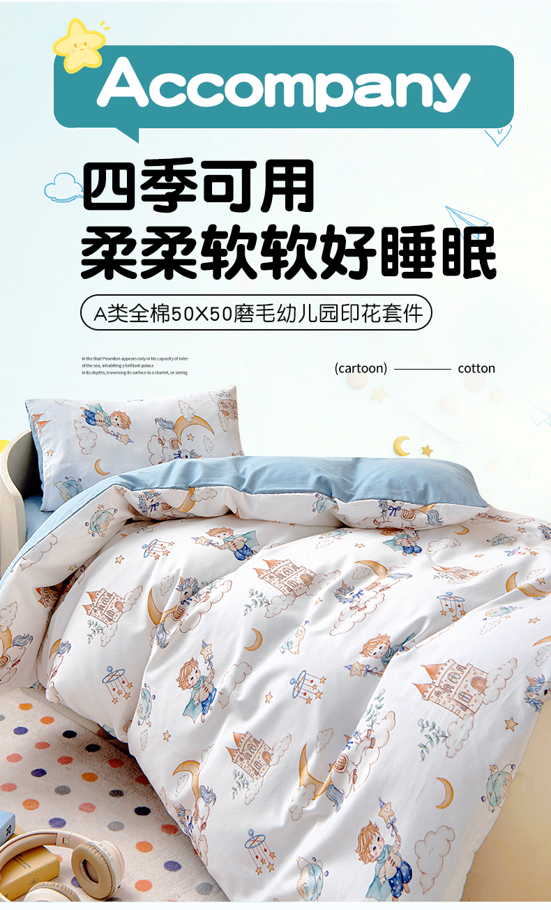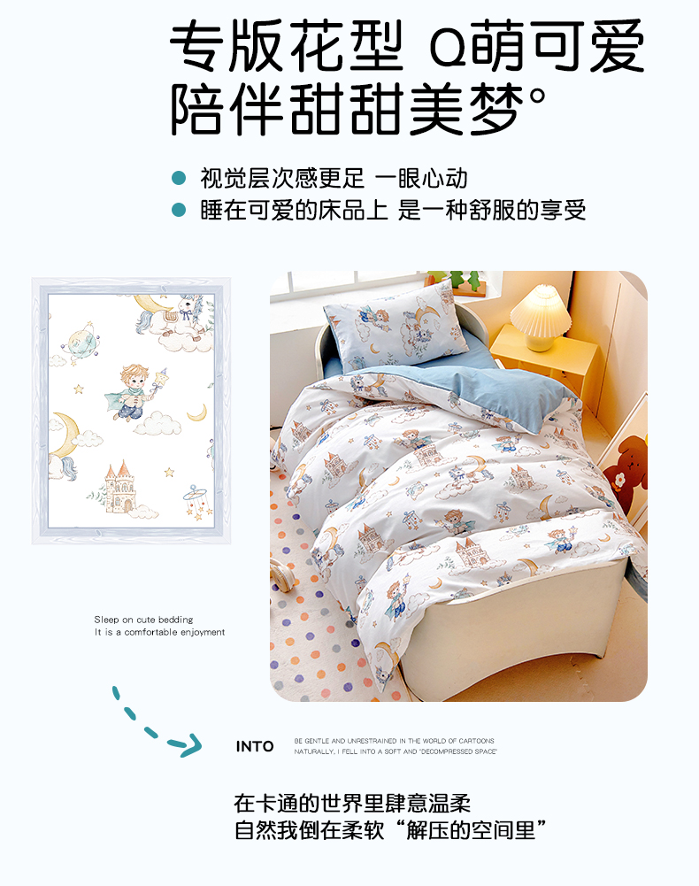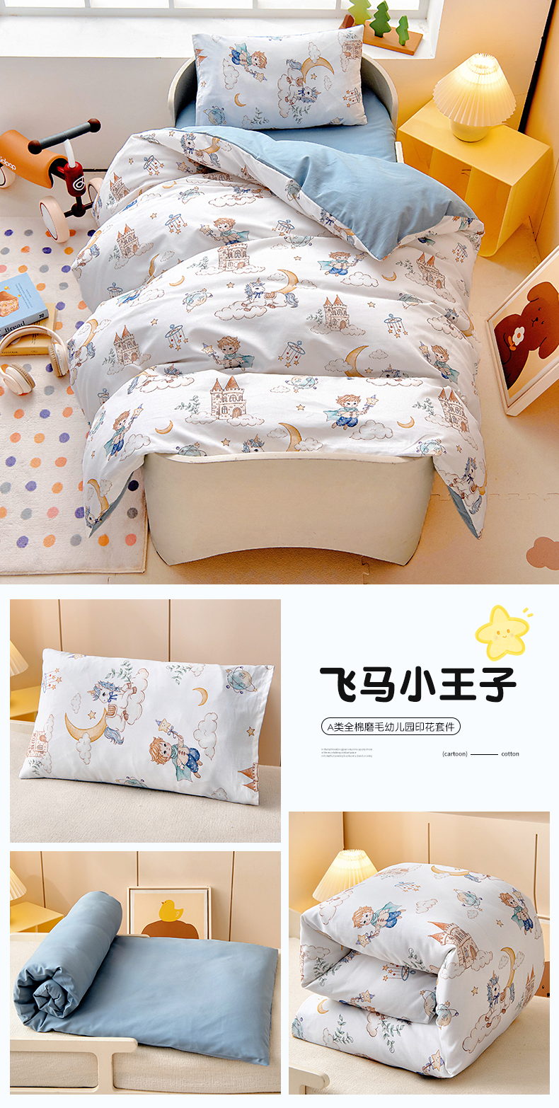 当前位置: 91家纺网 > 商品网购 > 床品套件 > 三件套 > 梵赫 2025新款纯棉A类50*50数码卡通小版婴童套件幼儿园三件套 飞马小王子
