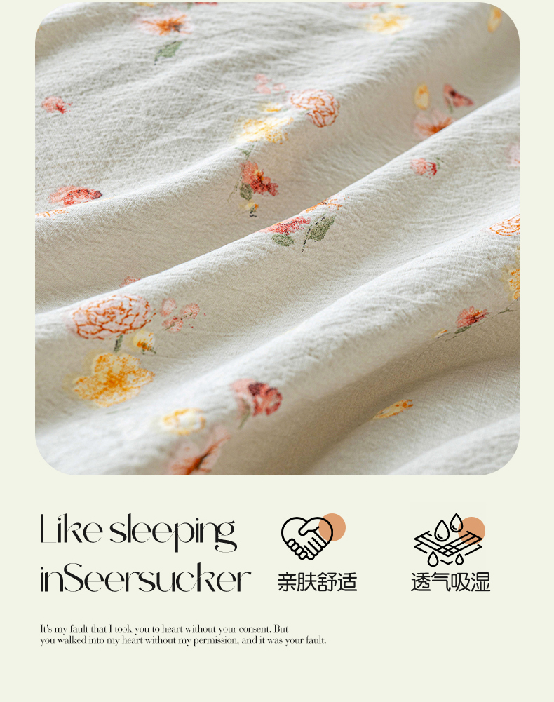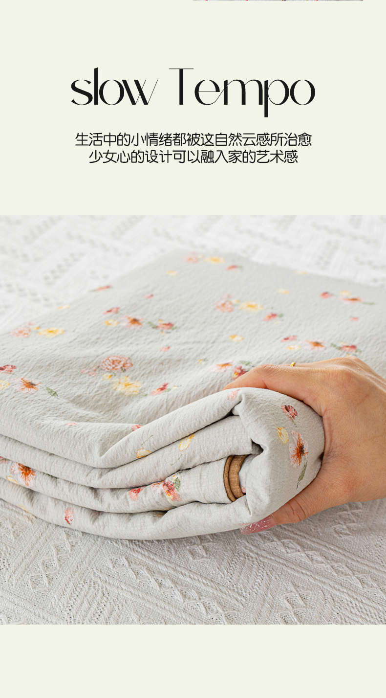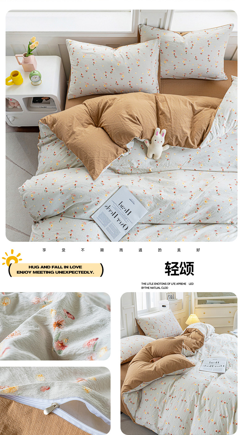 商品名称:奇丝雅 2025新款A类有氧超柔云感双层纱皱皱纱学生宿舍三件套家用四件套单被套 轻颂