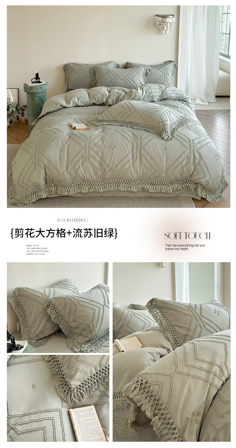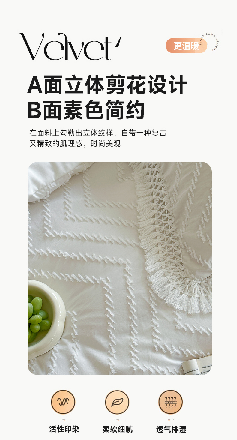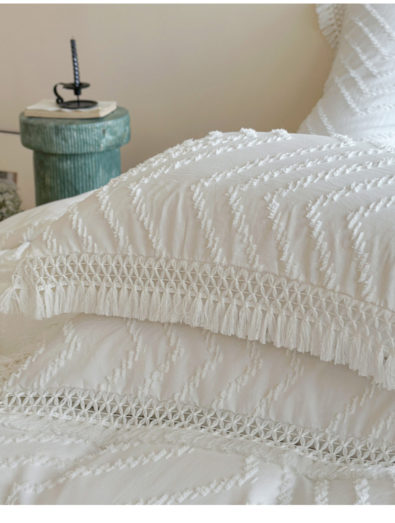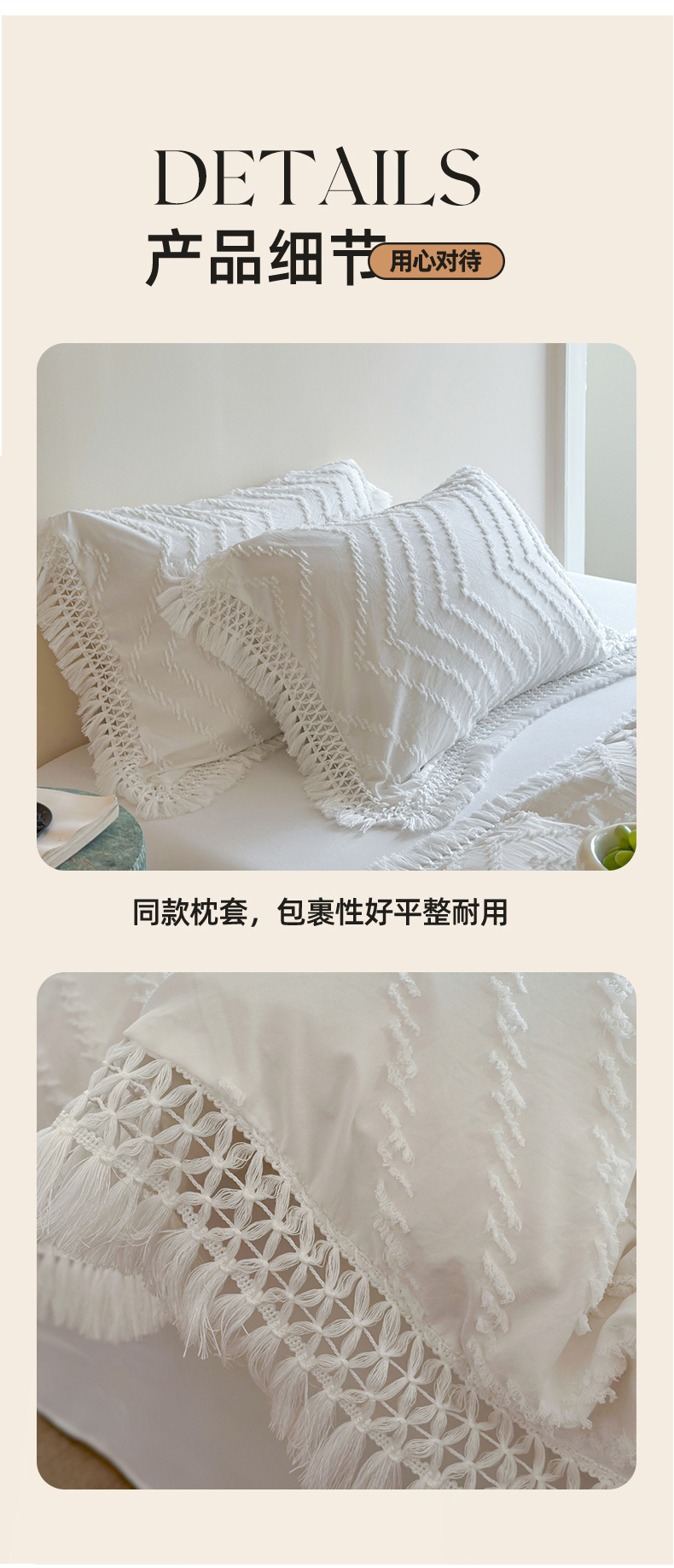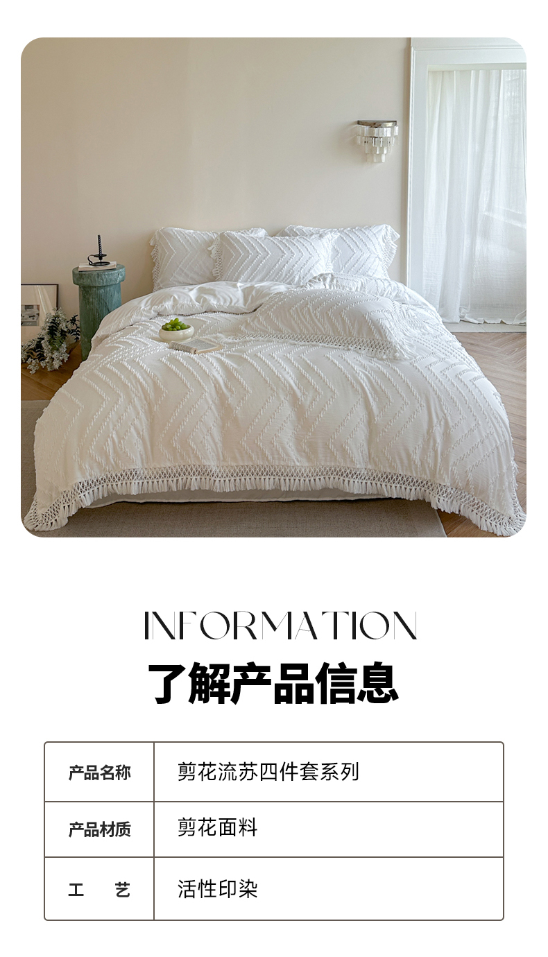 当前位置: 91家纺网 > 商品网购 > 床品套件 > 四件套 > 其它四件套 > 缘生活 2025新款素色简约立体剪花流苏四件套 剪花波浪+流苏白色