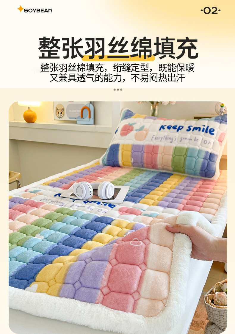 • 91家纺网 家纺一手货源 找家纺 梵朴 2025新款学生宿舍上下铺牛奶绒夹棉床垫床护垫床褥子 爱心熊熊