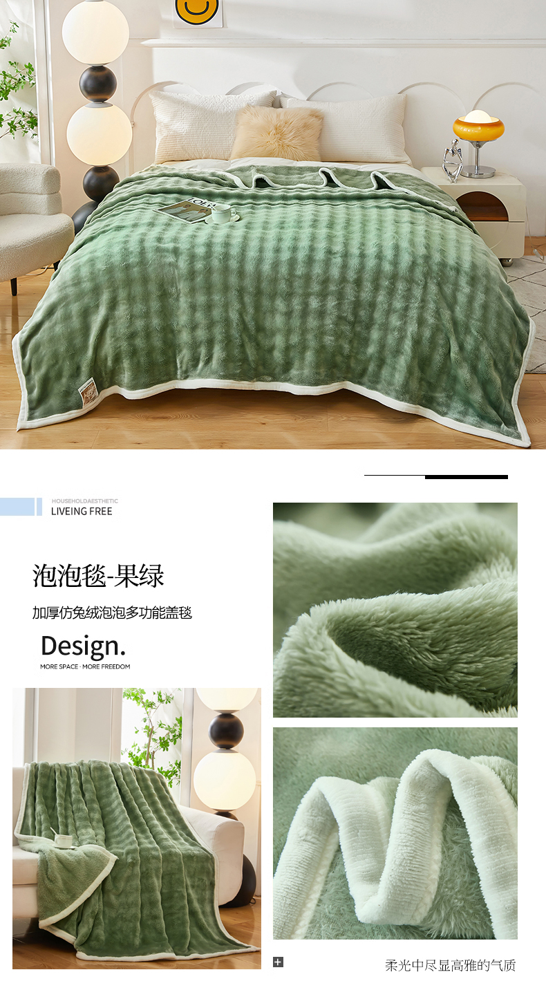 商品名称:七里香 2025新款A类跨境外贸托卡斯兔毛绒牛奶绒毛毯泡泡毯多功能盖毯 泡泡毯-果绿