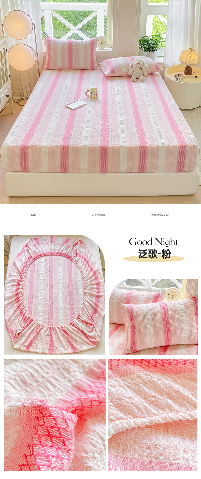 灰鲸 2025新款全棉纯棉色织提花单床笠 床笠单件 泛歌-粉