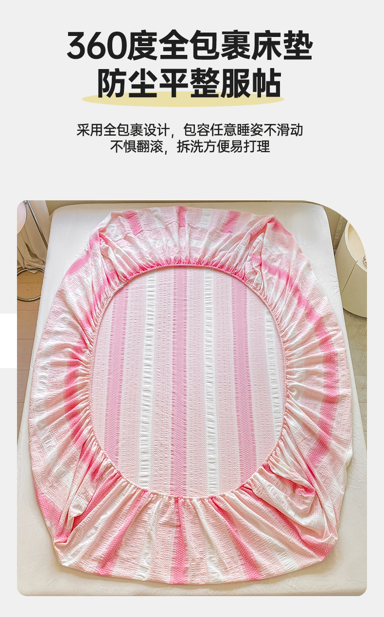 • 91家纺网 家纺一手货源 找家纺 灰鲸 2025新款全棉纯棉色织提花单床笠 床笠单件 泛歌-粉
